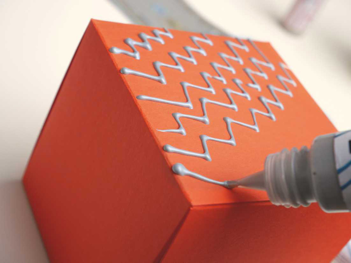 Po vyschnutí se stává barva matnou a tvoří 3D reliéf. Dekorovaný předmět musí být čistý a odolný teplotě.