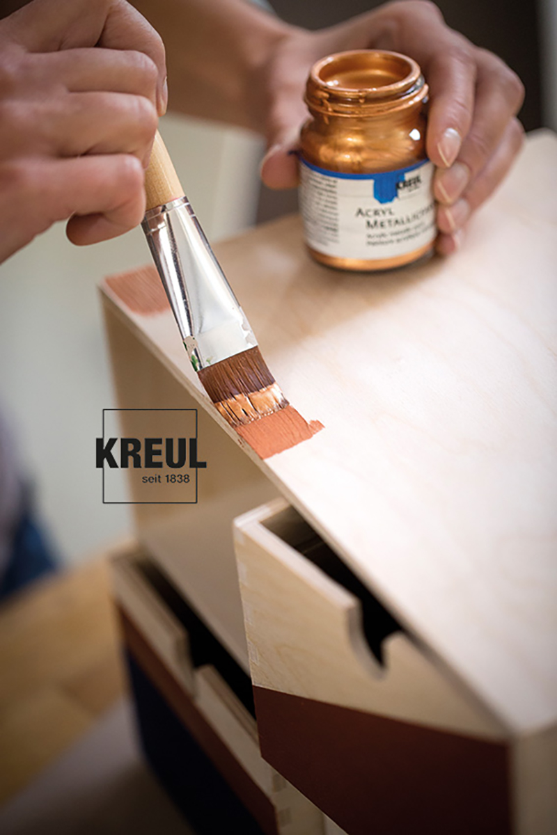 KREUL Akrylové matné barvy dodávají každému dekorativnímu projektu jednoduchou eleganci. Jejich přitažlivost spočívá v dokonalé shodě barevných odstínů. Teplá grafitová šedá, přátelská citronová žlutá nebo tmavě zelená jedle.