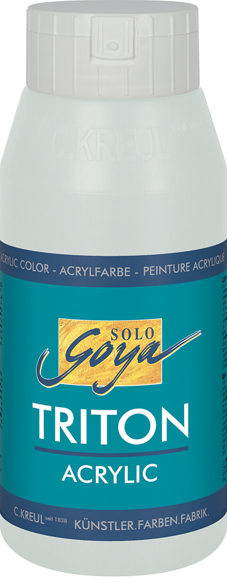 Je všestranná, velmi kvalitní akrylová barva ve studijní kvalitě. Je lehce roztíratelná, ideální pro umělecké akademie a školy. Tyto akrylové barvy perfektně doplňují akrylové fixy TRITON Kreul, které mají úplně stejné odstíny a jsou tedy výborné na malování kontur, které následně můžete vybarvit akrylovou barvou TRITON Solo Goya. Tento akrylový systém pak doplňují ještě akrylové inkousty TRITON Kreul, kterými můžete buď rovnou malovat nebo se jimi dají doplnit vybrané odstíny akrylových fixů TRITON Kreul.