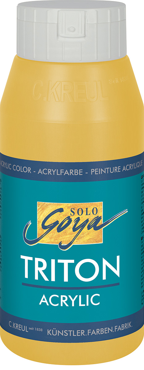 Je všestranná, velmi kvalitní akrylová barva ve studijní kvalitě. Je lehce roztíratelná, ideální pro umělecké akademie a školy. Tyto akrylové barvy perfektně doplňují akrylové fixy TRITON Kreul, které mají úplně stejné odstíny a jsou tedy výborné na malování kontur, které následně můžete vybarvit akrylovou barvou TRITON Solo Goya. Tento akrylový systém pak doplňují ještě akrylové inkousty TRITON Kreul, kterými můžete buď rovnou malovat nebo se jimi dají doplnit vybrané odstíny akrylových fixů TRITON Kreul.