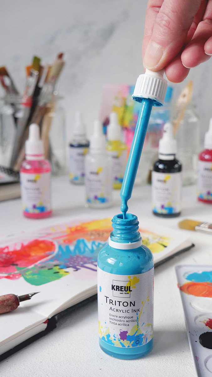 Vítejte ve světě akrylových barev TRITON. Čím jsou tyto barvy výjimečné? Jsou krásné s intenzivními odstíny a hlavně s propracovaným systémem, který zahrnuje akrylové barvy, fixy a akrylové inkousty, kterými se fixy dají doplňovat.