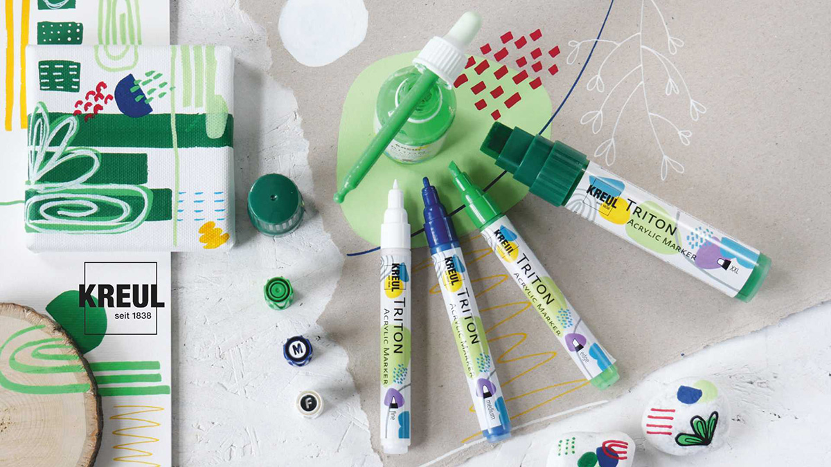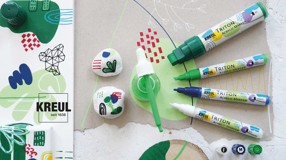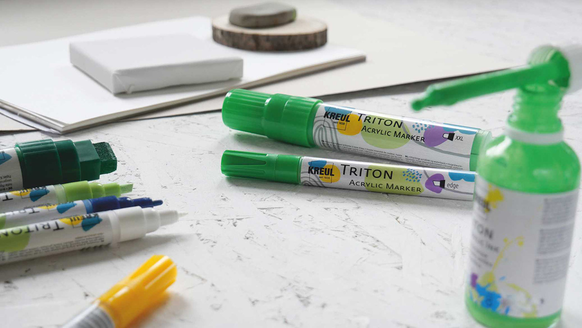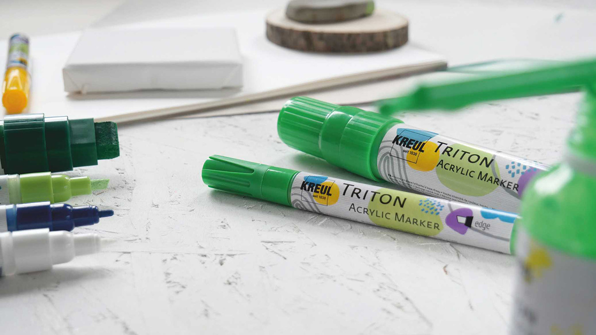 Vítejte ve světě akrylových barev TRITON. Čím jsou tyto barvy výjimečné? Jsou krásné s intenzivními odstíny a hlavně s propracovaným systémem, který zahrnuje akrylové barvy, fixy a akrylové inkousty, kterými se fixy dají doplňovat.