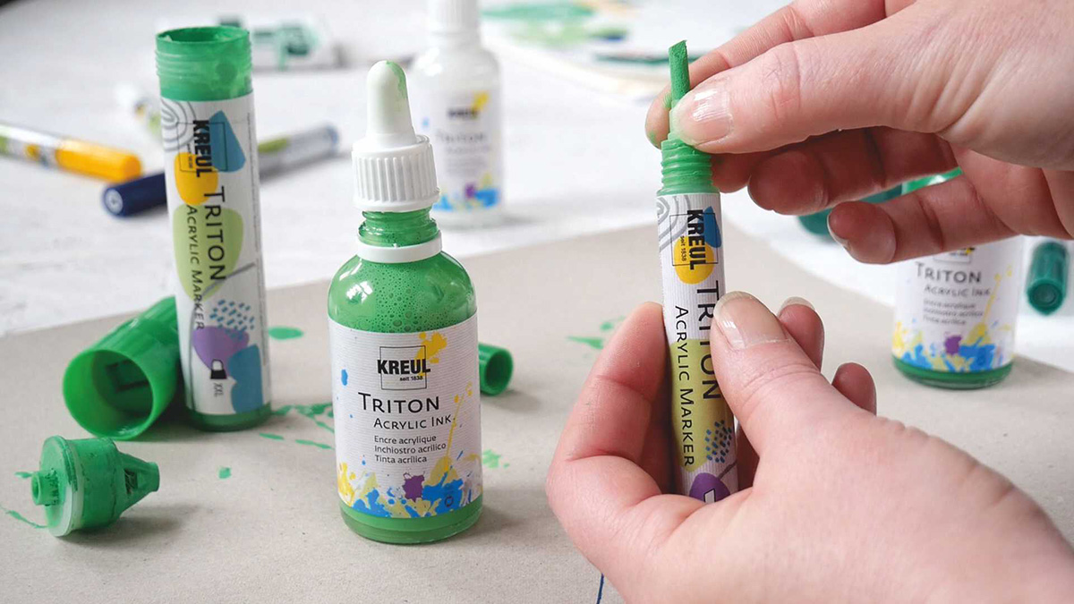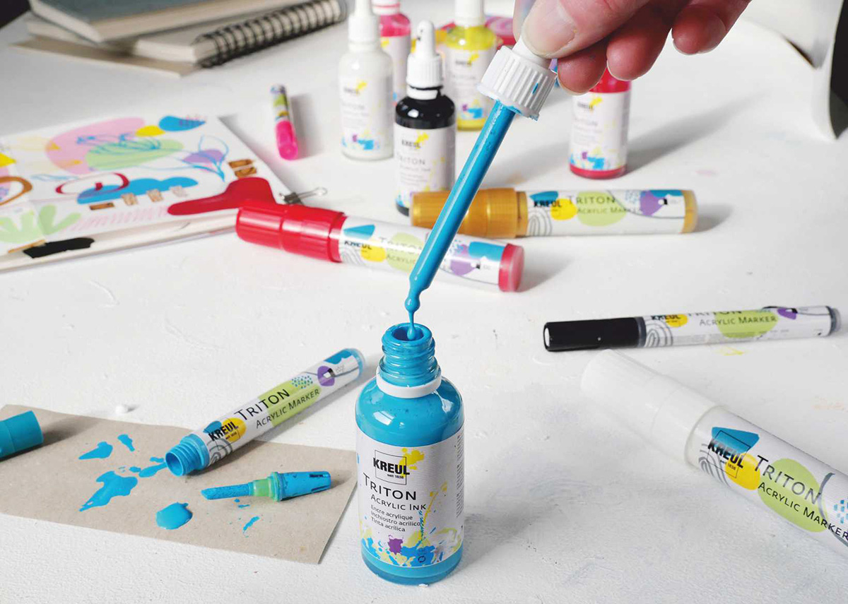 Vítejte ve světě akrylových barev TRITON. Čím jsou tyto barvy výjimečné? Jsou krásné s intenzivními odstíny a hlavně s propracovaným systémem, který zahrnuje akrylové barvy, fixy a akrylové inkousty, kterými se fixy dají doplňovat.