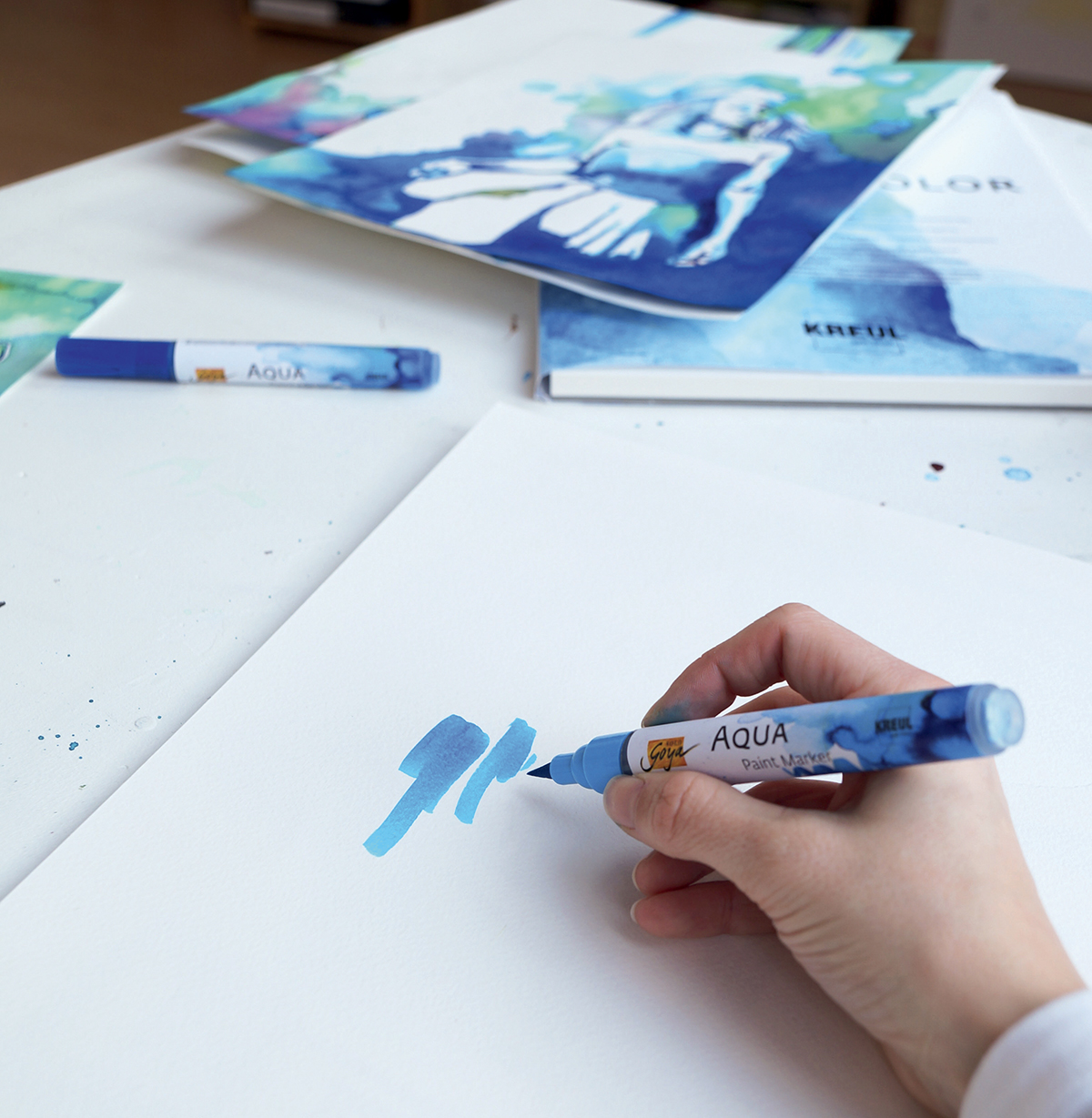Typický charakter tekoucího akvarelu vzniká při kontaktu SOLO GOYA akvarelového fixu s vodou. Koncentrovanou barvu lze kdykoli rozetřít s vodou a na papíru SOLO GOYA, který je vhodný pro akvarel vzniká krásná akvarelová malba. Umělci a kreativci oceňují snadnou manipulaci s fixem a pružný štětcový hrot pro jemné linky i intenzivní barevné plochy. Malování vodou nebo v kombinaci s Blenderem SOLO GOYA umožňuje dosáhnout nejjemnějších odstínů a intenzivních barevných přechodů. Po dokončení se hotová práce uloží do desek, aby se ochránily barvy.