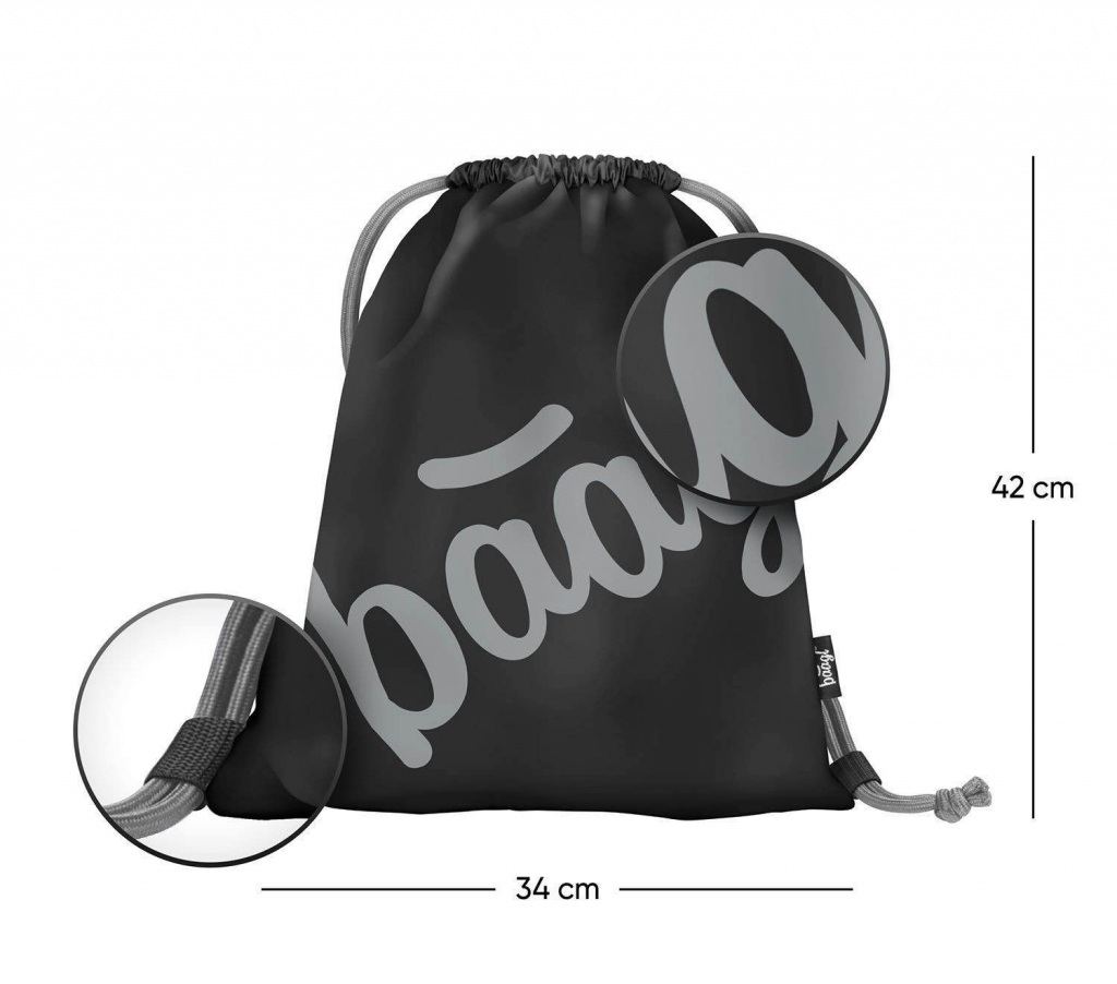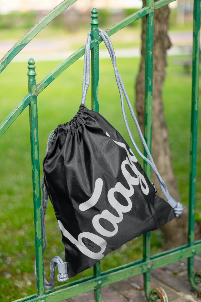 • Sáček na cvičky nebo přezůvky v černé barvě s logem Baagl, které ve tmě svítí
