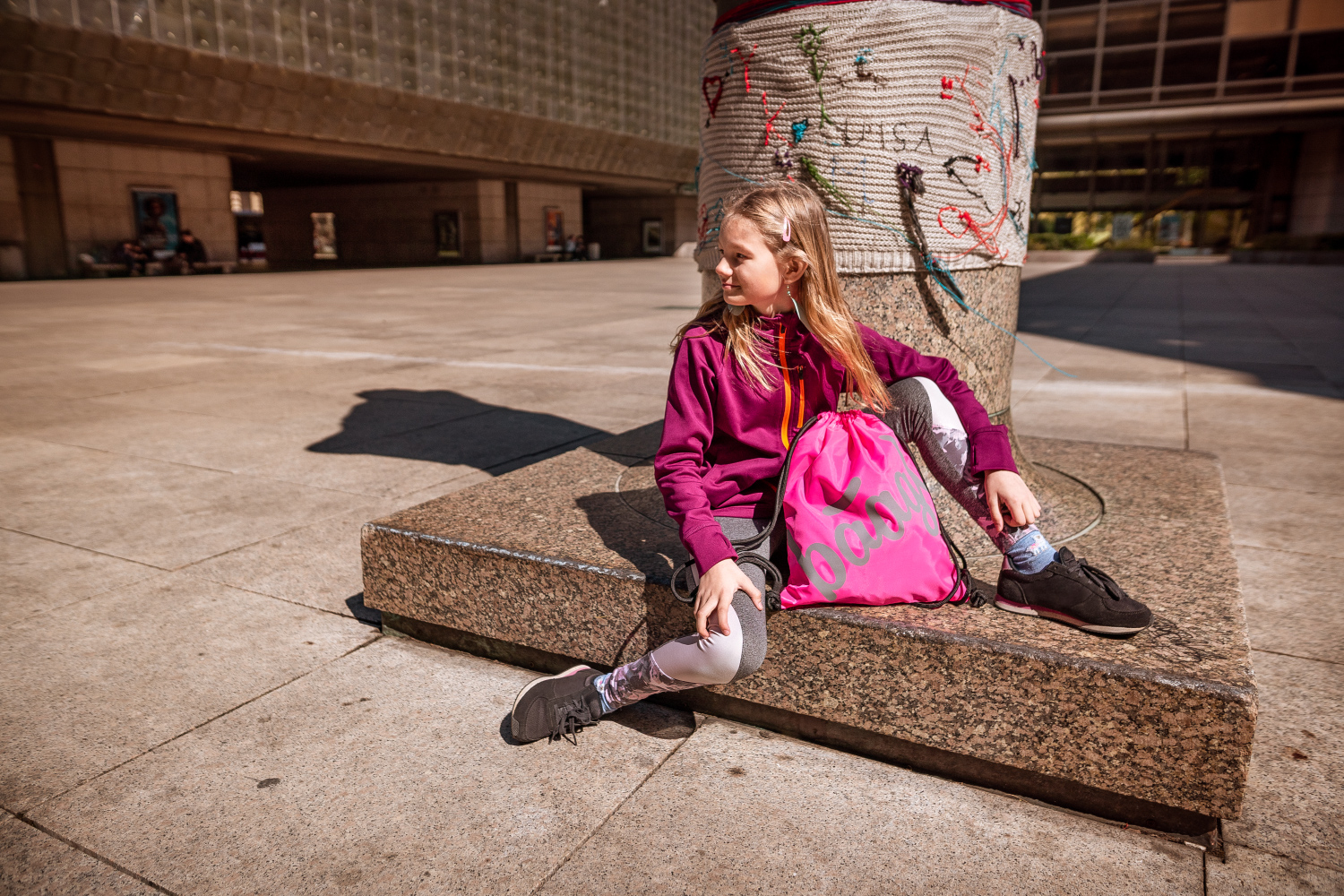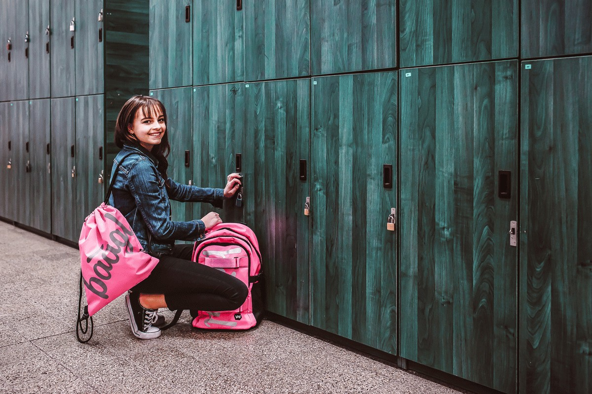 • Sáček na cvičky nebo přezůvky v růžové barvě s logem Baagl, které ve tmě svítí