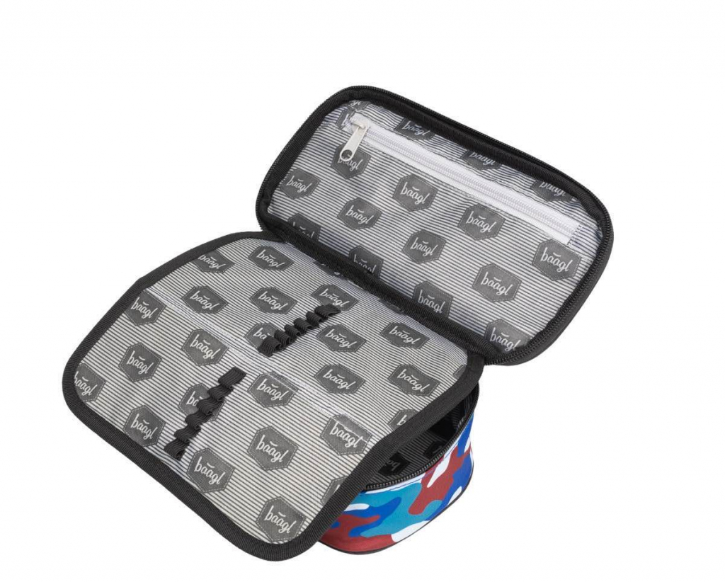 • Pevný penál na zip s dvojitou výklopnou chlopní a s army potiskem.