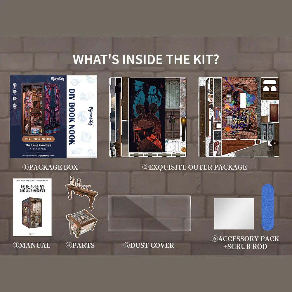 Naši klienti se podělili o přeměnu svých prostor a zážitky ze stavby tohoto Book Nook dioráma. Jeden z našich věrných zákazníků shrnul své dojmy takto: „Sestavení Dlouhého loučení bylo jako ponořit se do jiného světa. Už jen samotné stavění mě vtáhlo do příběhu tak realistického, že jsem skoro slyšel ozvěnu vlastních kroků na mokrém asfaltu. Nyní se všechna návštěva zastavuje u mé knihovny a s úžasem obdivuje tuto malou scénu. Mám pocit, že jsem do svého domova přinesl kousek detektivní historie.”