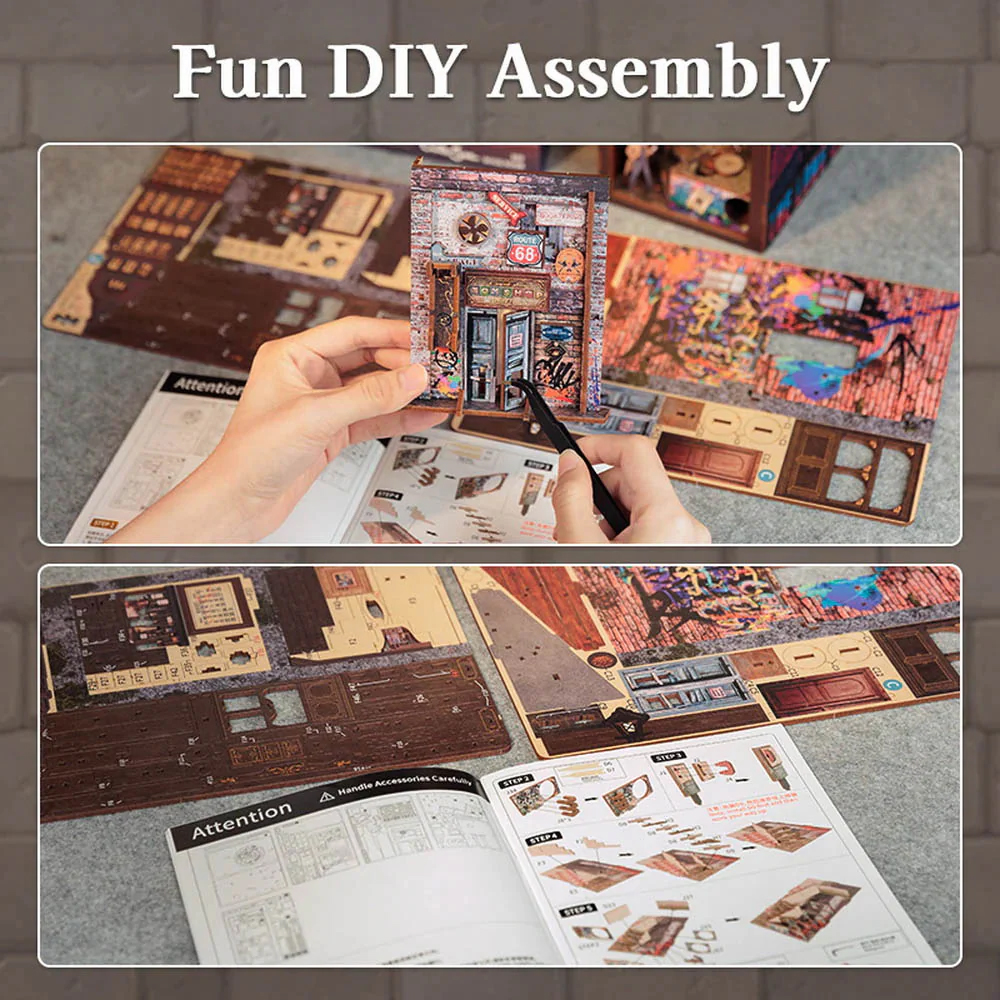 Jedinečný projekt pro kutily, který vás vtáhne do temného světa New Yorku 50. let. Tento detailně propracovaný diorámek, navržený speciálně pro umístění mezi knihy na poličce, promění vaši knihovnu na magickou bránu do světa noir detektivek. Obsahuje vše, co potřebujete k vytvoření malé scény plné tajemství – od předřezaných dřevěných dílů po LED světla, které vdechnou vaší scéně život. Tento projekt je nejen zábavný a kreativní, ale také terapeutický a uklidňující – ideální způsob, jak strávit několik volných hodin.