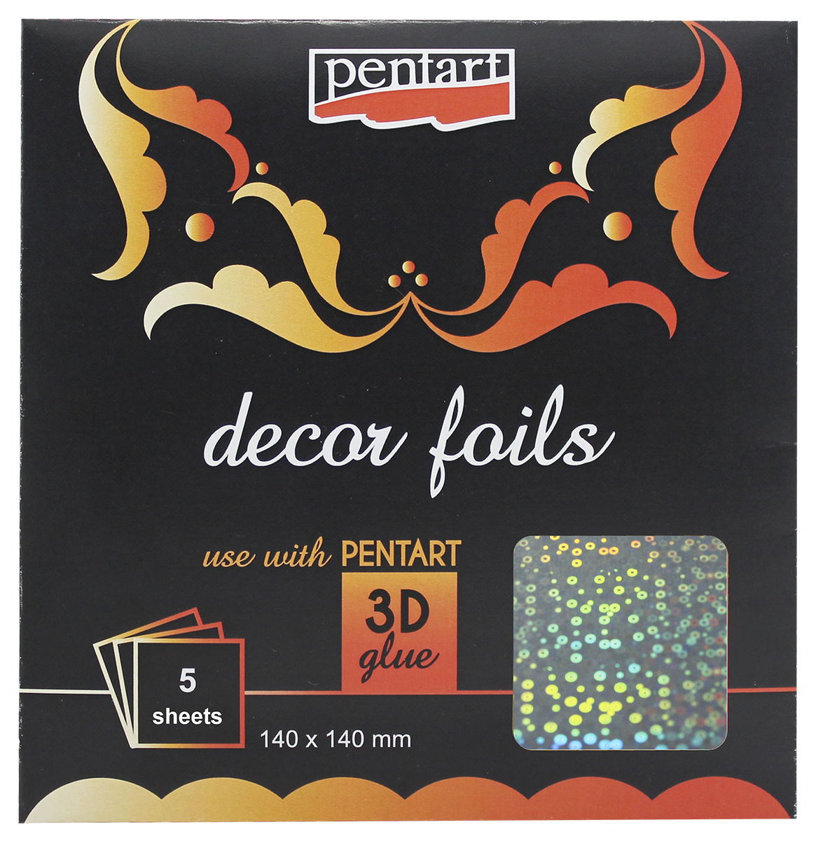 Fólie s holografickým efektem. V kombinaci s lepidllem 3D dosáhnete zvláštní 3D efekt. Na konečné přelákování použijte lesklý lak na vodní bázi.