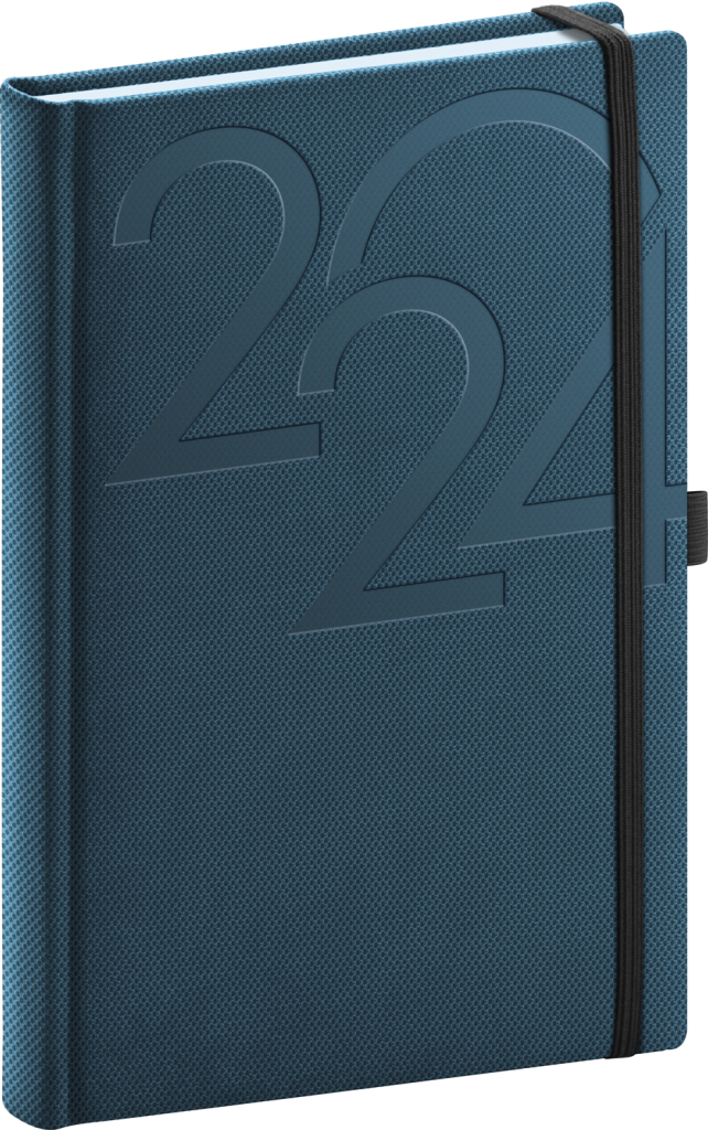 Elegantní modrý denní diář Ajax 2024 v rozměru A5. Povrch s jemnou strukturou připomínající výbrus diamantu je ideální pro všechny typy ražeb. Diář má zakulacené rohy, poutko na tužku a elastickou gumičku, sloužící k pevnému uzavření.