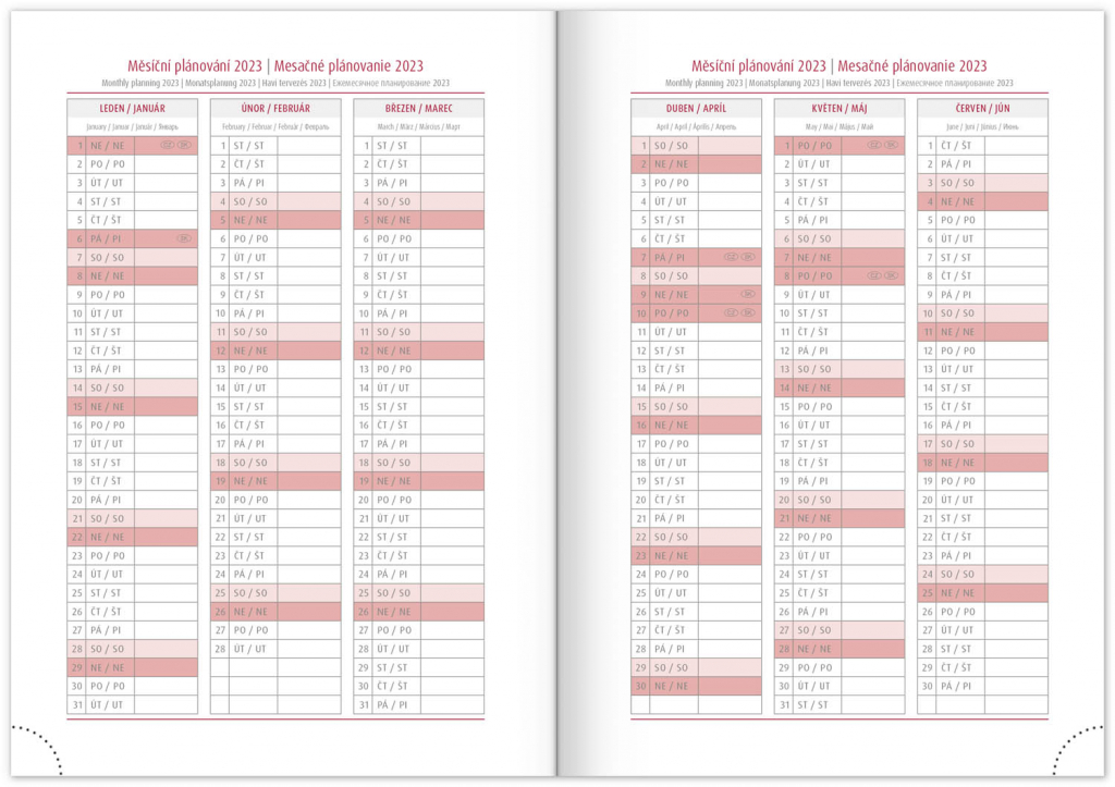 • měsíční plánovací kalendář 2023