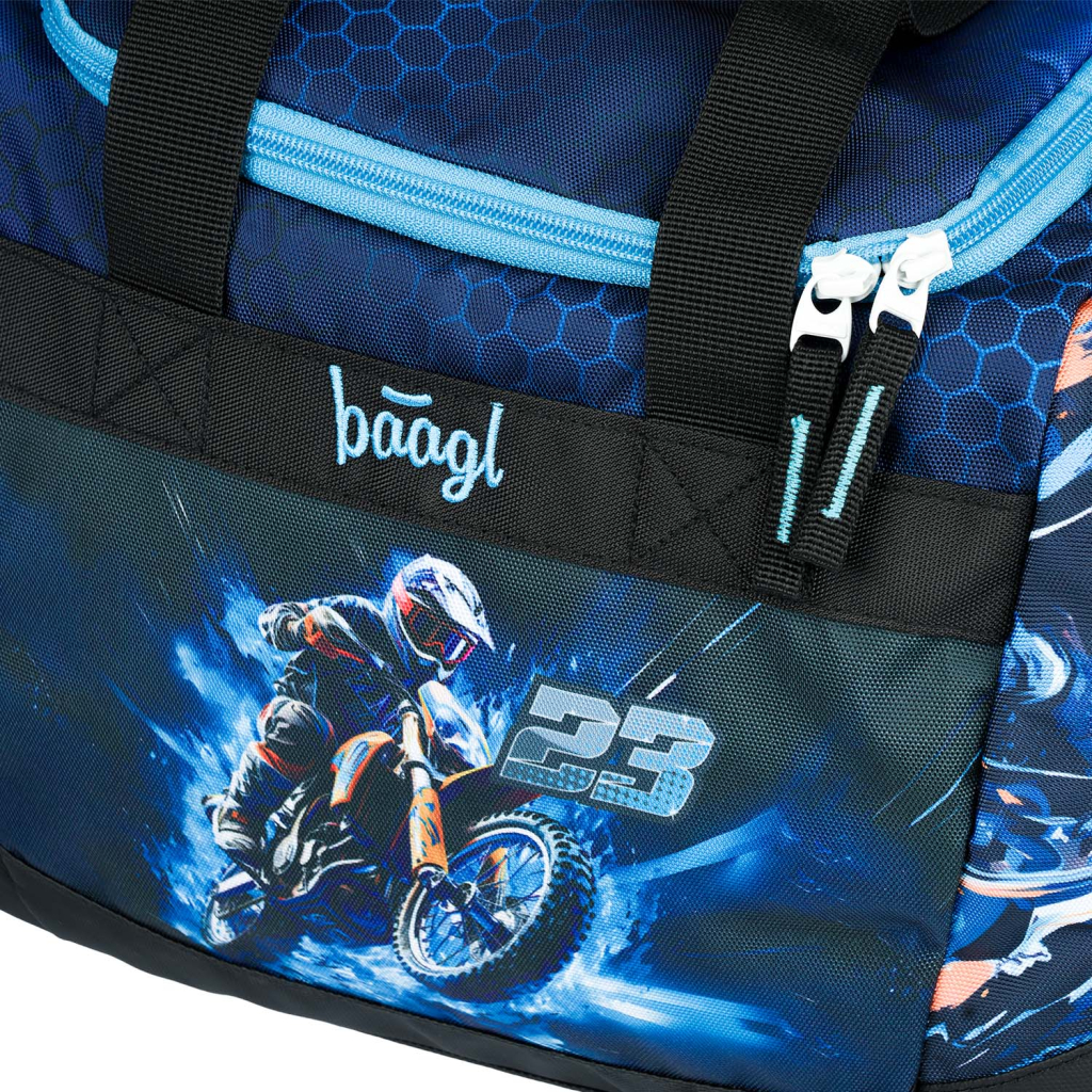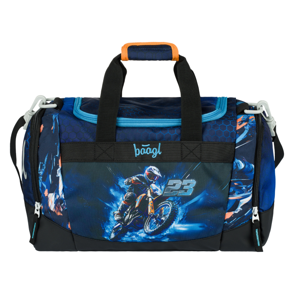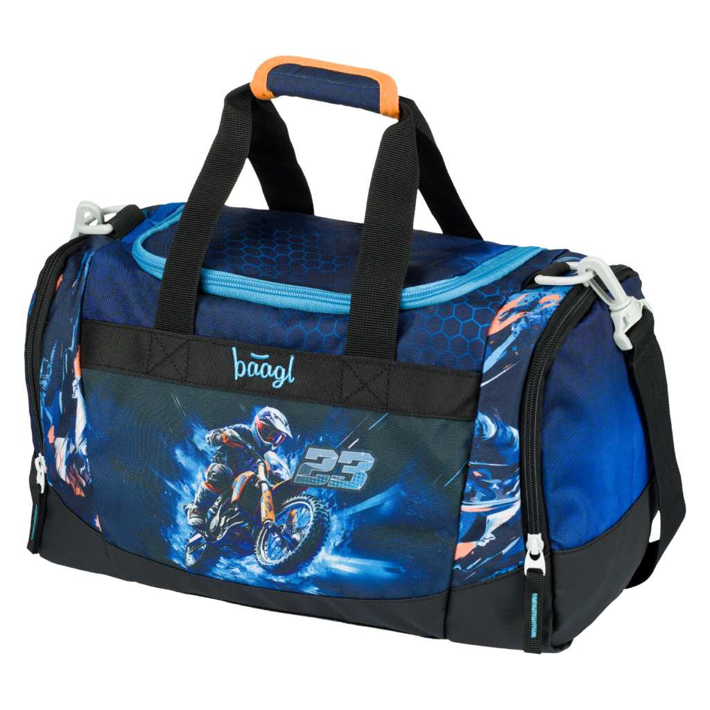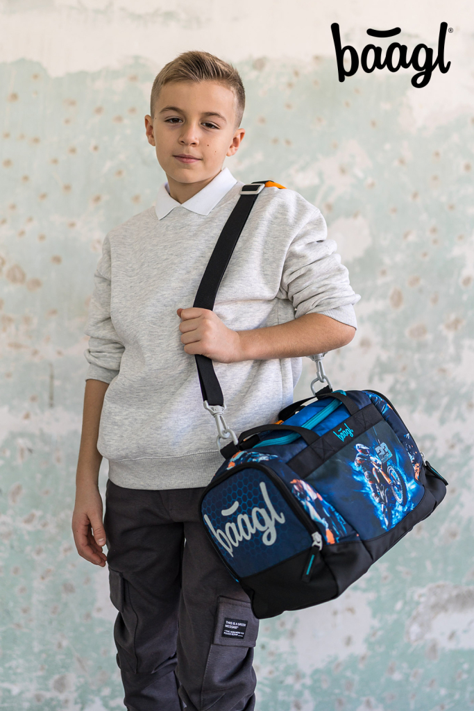 Dětská sportovní taška s motivem motokrosového závodníka. Prostorná hlavní komora s širokým víkem a boční prodloužená kapsa na obuv zajistí dostatek místa pro všechny pomůcky každého malého sportovce.