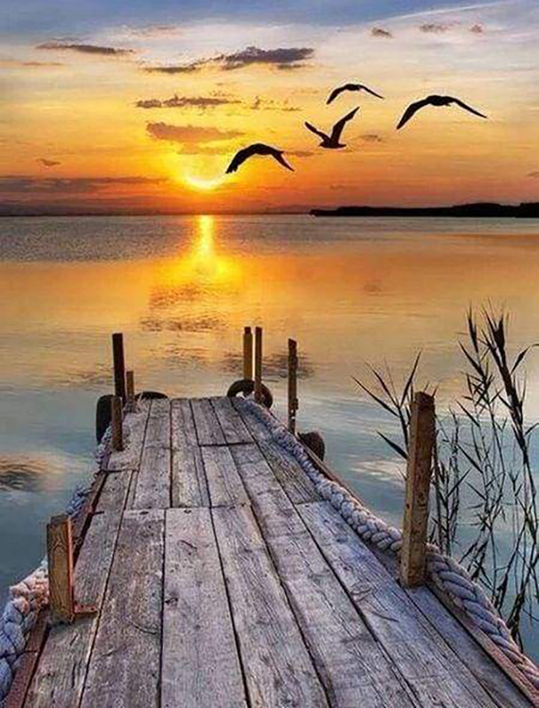 Diamantové malování - PŘÍSTAV NA JEZEŘE bez rámu 40 x 50 cm