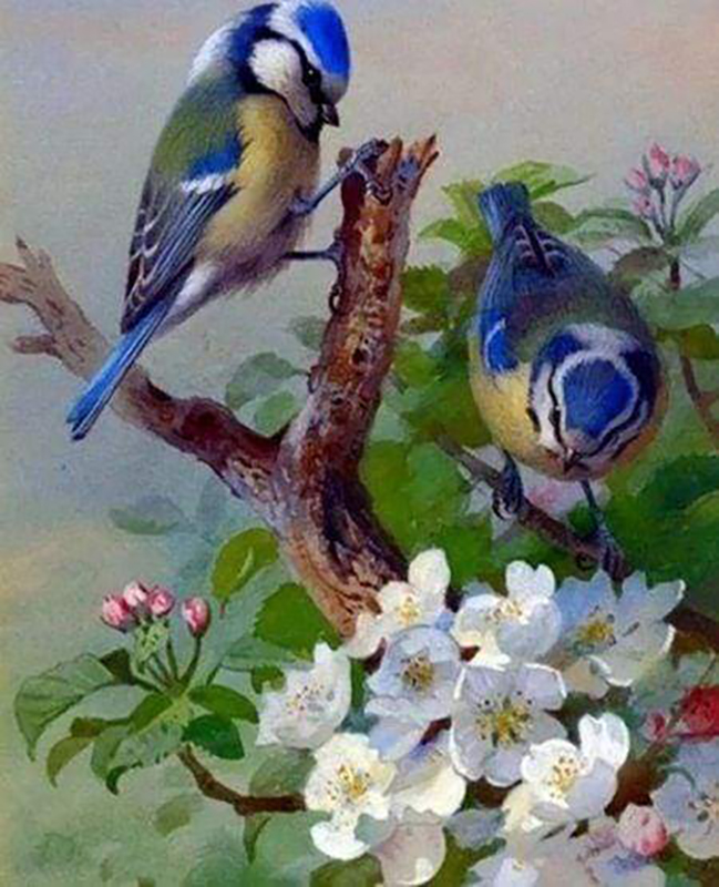 Diamantové malování - PTÁCI NA VĚTVI na rámu 40 x 50 cm