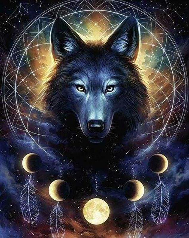 Diamantové malování - TEMNÝ VLK bez rámu 40 x 50 cm