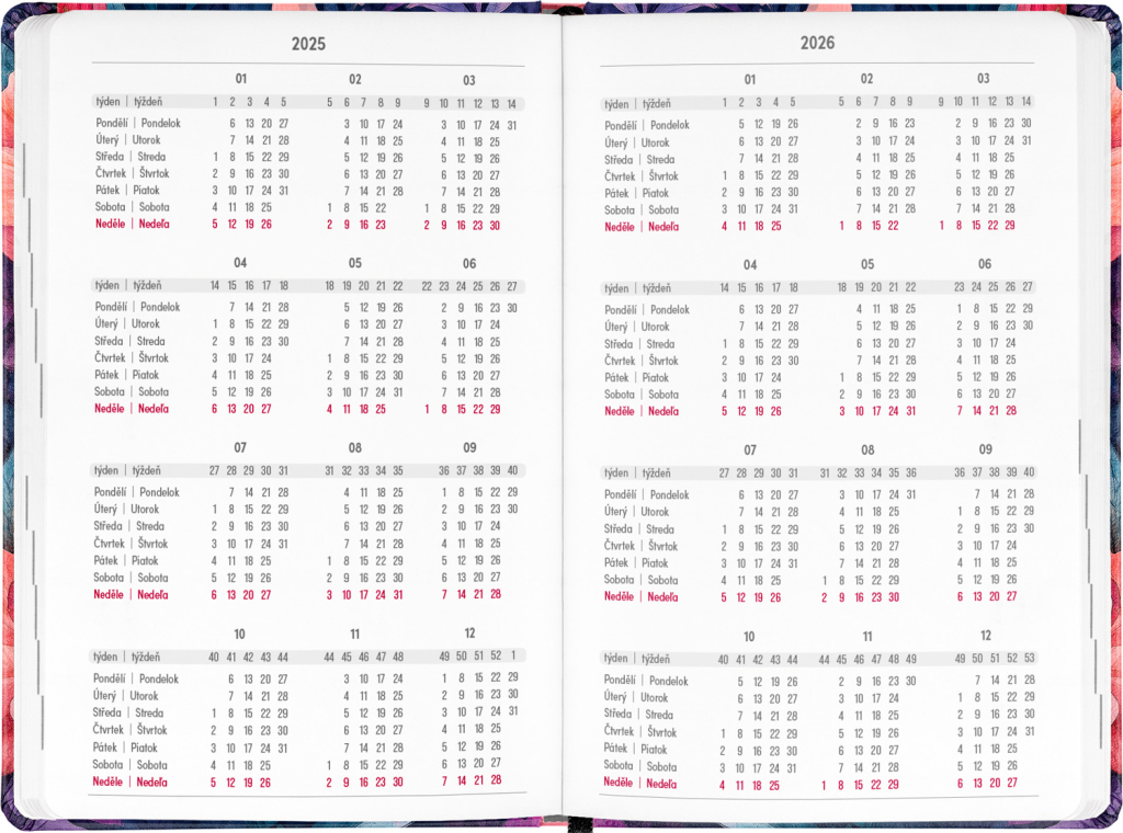 Plánujete větší projekty, důležité rodinné události, dovolené nebo obchodní schůzky s dlouhým předstihem? Váš nový diář má vše potřebné, aby vám poskytl ten správný nadhled, aniž byste museli listovat dvaceti různými stránkami.