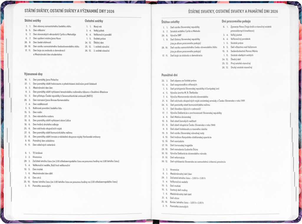 3. Česko-slovenské kalendárium v řádkové podobě – vše hned na očích