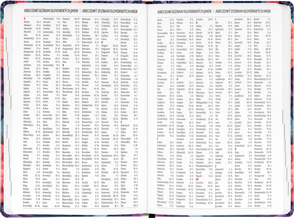 Jména, svátky, přehled svých i blízkých, žádný důležitý den už nepřehlédnete. Česká i slovenská jména v kalendáři potěší každého, kdo nechce na nikoho zapomenout.