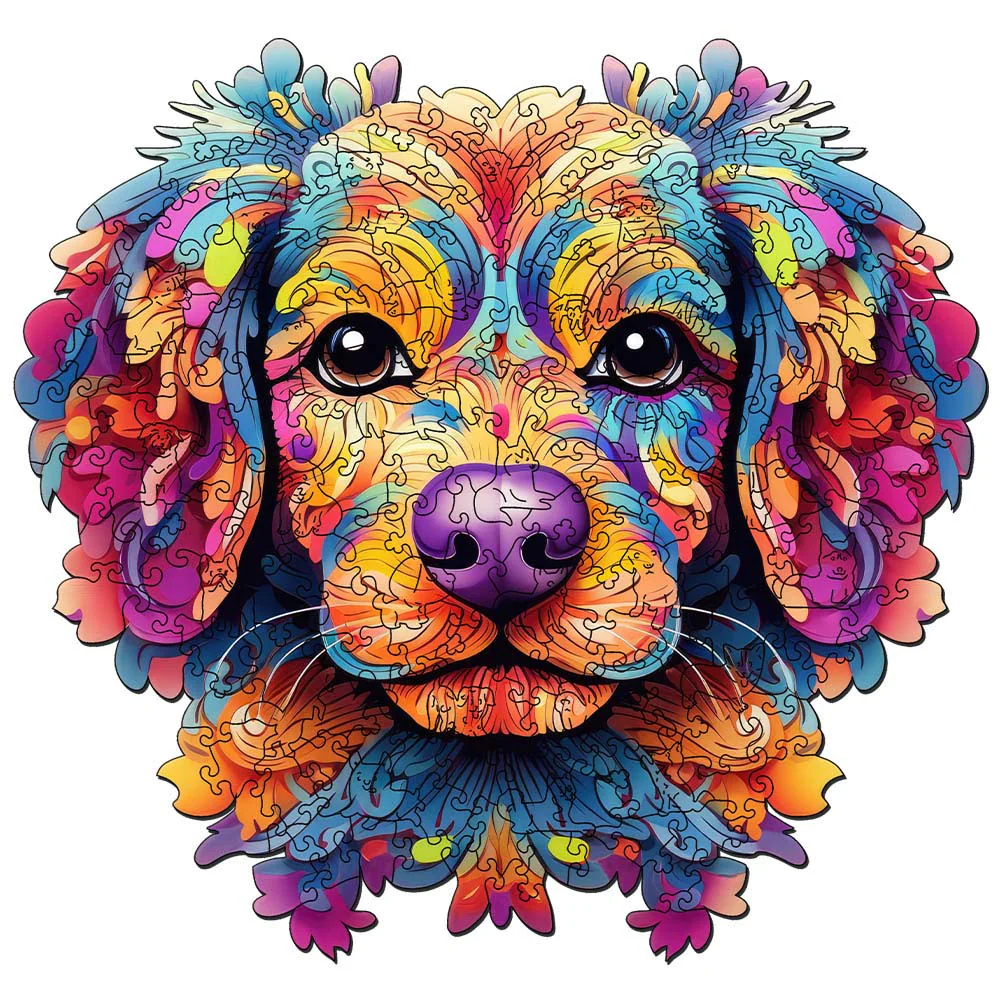 • Dřevěné puzzle – barevný portrét psa