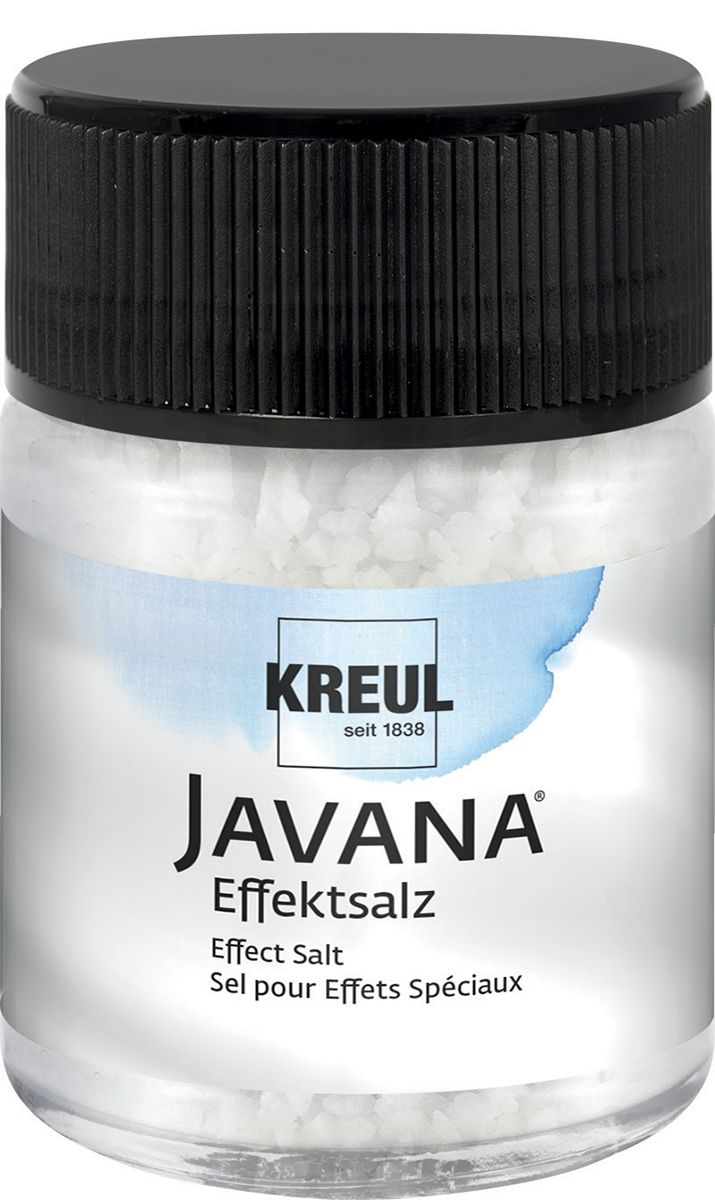 zajímavého vzoru s barvou JAVANA na hedvábí lze dosáhnout přisypáním krystalků soli na barvenou plochu během schnutí vzniká zajímavý efektní vzor, poté je sůl odstraněna