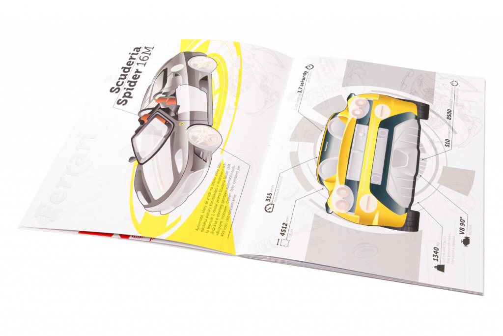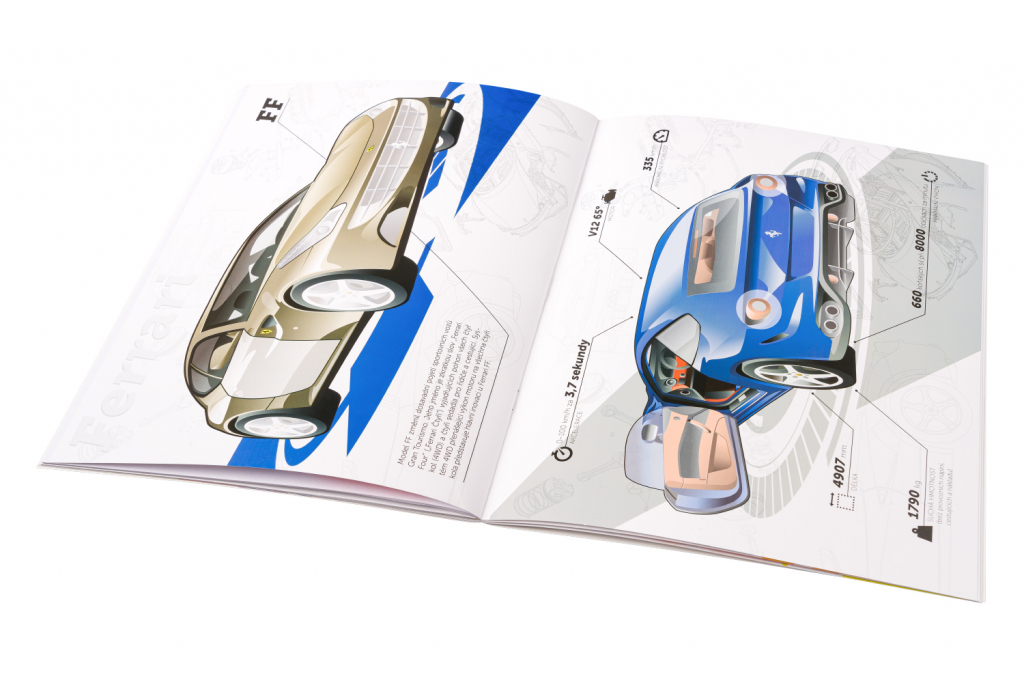 Objevujte dokonalé tvary nejkrásnějších silničních automobilů proslulé značky Ferrari a užijte si spoustu zábavy s doplňováním atraktivních modelů samolepkami. Kromě zábavy vás čeká i řada zajímavých informací o těchto úžasných nablýskaných strojích a jejich technických parametrech.