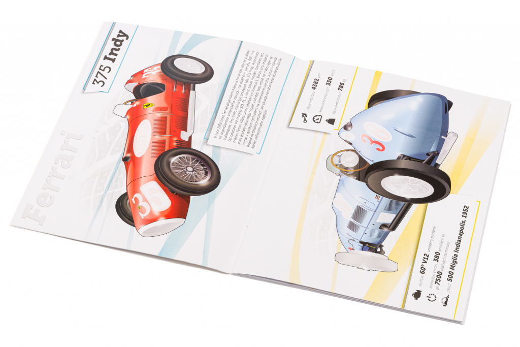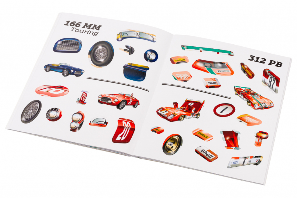 Objevujte dokonalé tvary nejkrásnějších silničních automobilů proslulé značky Ferrari a užijte si spoustu zábavy s doplňováním atraktivních modelů samolepkami. Kromě zábavy vás čeká i řada zajímavých informací o těchto úžasných nablýskaných strojích a jejich technických parametrech.