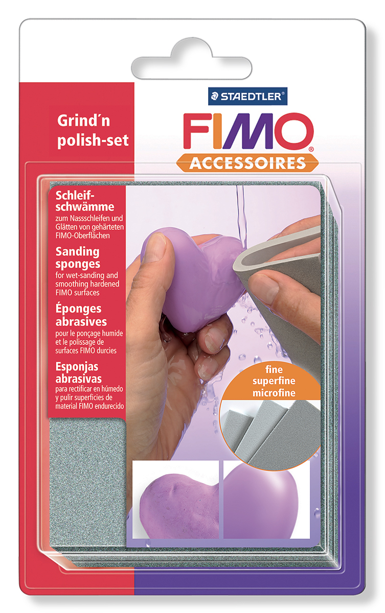 Brusné houbičky k broušení za mokra slouží k vyleštění zaoblených a vypouklých vytvrzených ploch FIMO, optimální k broušení zaoblených a vypouklých předmětů FIMO příslušnou plochou houbičky, snadné přistřižení podle potřeb konkrétního použití, 3 různé míry zrnitosti - jemná, superjemná a mikrojemná - dlouhodobá životnost, snadno omyvatelné s možností opakovaného použití. Čím je povrch hladší, tím lepší je výsledek v případě, že se na povrch ještě nanáší lesklý lak FIMO.