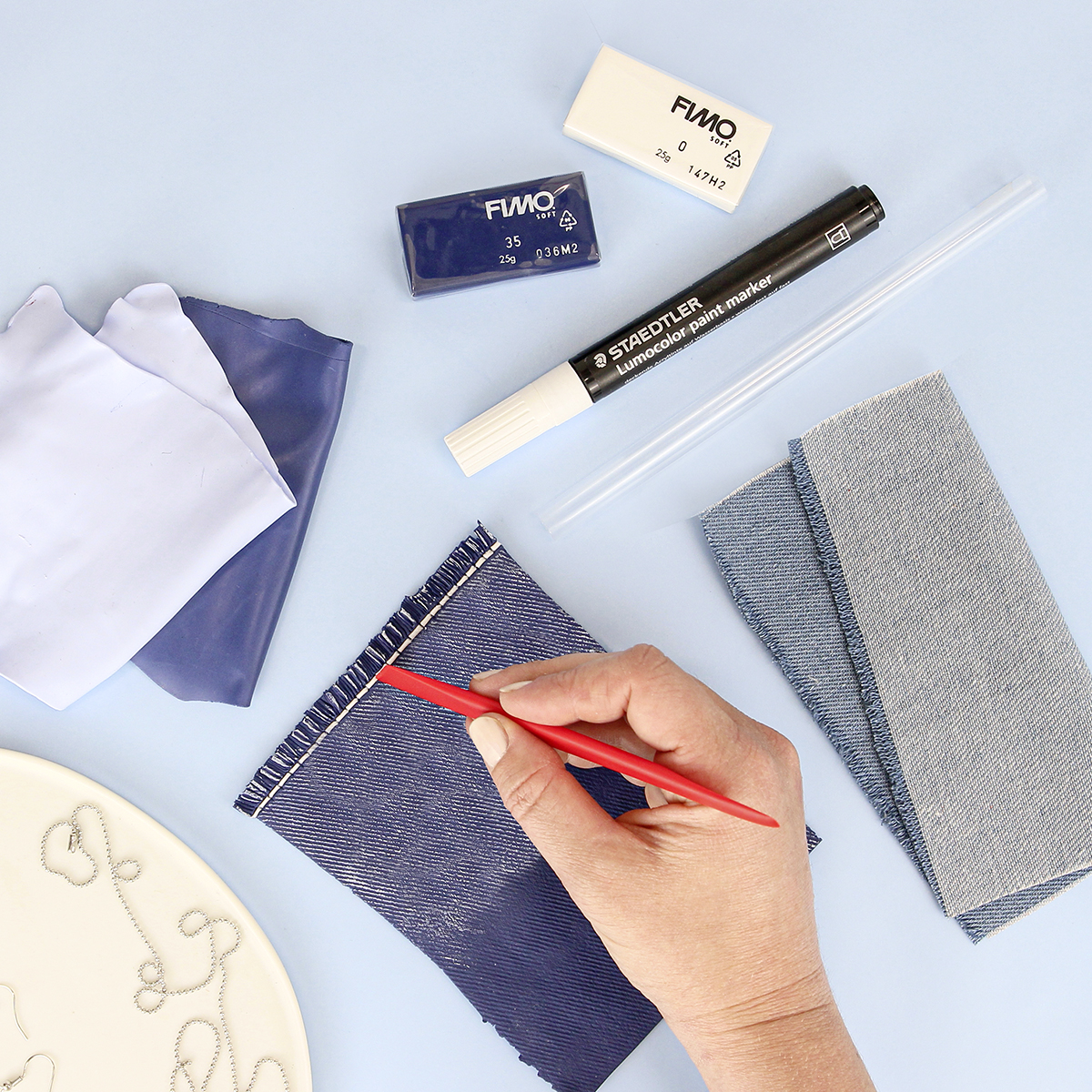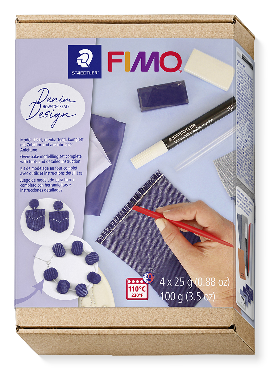 Tato sada obsahuje vše, co potřebujete k vytvoření džínového efektu, včetně podrobného návodu krok za krokem. Měkká a hladká modelovací hmota je infinitivně univerzální, takže můžete tvořit širokou škálu předmětů, od šperků a doplňků až po domácí dekorační předměty.