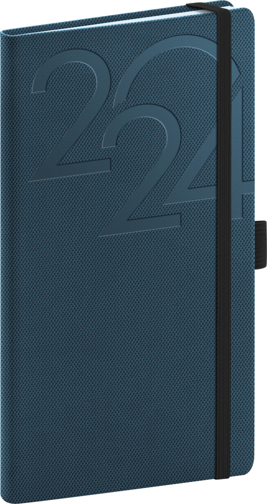 Elegantní modrý kapesní diář Ajax 2024 v praktickém rozměru. Povrch s jemnou strukturou připomínající výbrus diamantu je ideální pro všechny typy ražeb. Diář má zakulacené rohy, poutko na tužku a elastickou gumičku, sloužící k pevnému uzavření.