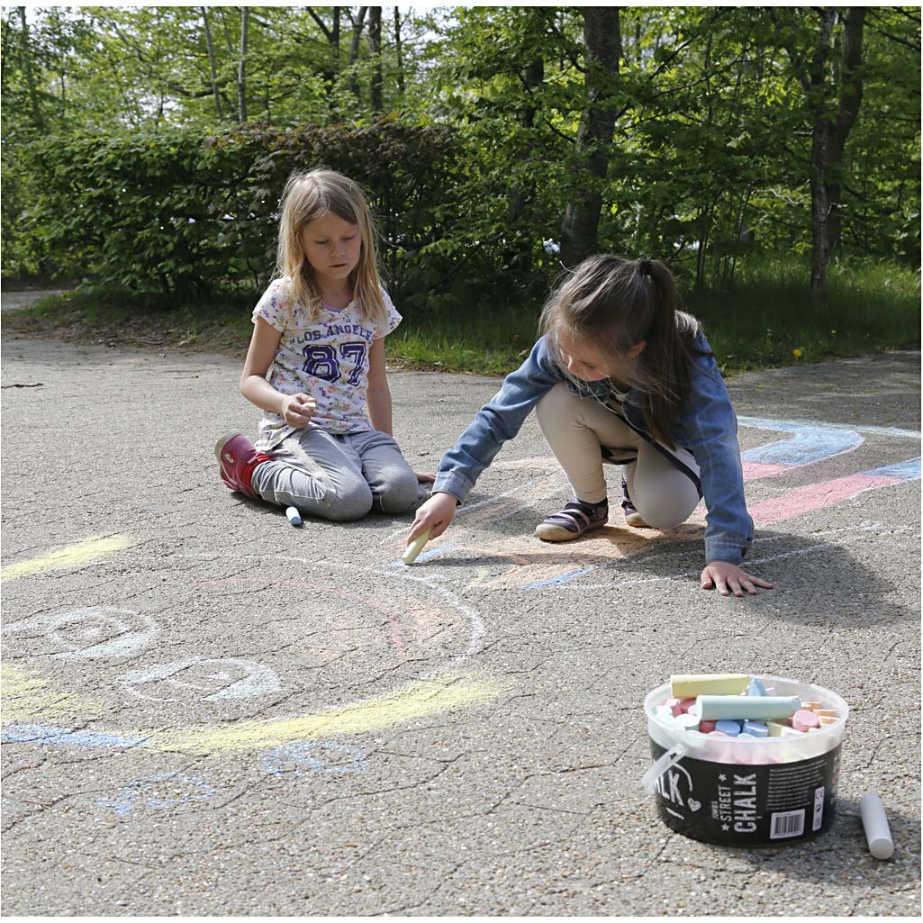 Hledáte venkovní aktivitu pro děti, která posiluje smysly, optimalizuje jemnou motoriku a podporuje učení barev a tvarů? S našimi barevnými křídami na chodník získáte hodiny venkovní zábavy v jediném kbelíku. Barvy a možnosti jsou téměř nekonečné, jakmile se do toho vy nebo děti pustíte. Křídy snadno smyjete vodou a můžete začít znovu s novými, zábavnými uměleckými díly, ať už kreslíte na dlažbu na příjezdové cestě nebo na asfalt na ulici.