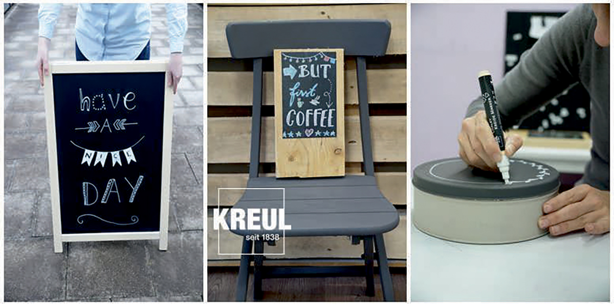 Můžete si lehce "načmárat" svoje zprávy, nákupní seznamy, přání či cokoliv jiného na různé povrchy jako jsou tabule, okna, zrcadla, sklo, obklady, fólie, kov či plexisklo. Později je můžete jen setřít vlhkým hadříkem. Vlastnoručně vyrobené připomínky nebo ozdobené skleněné povrchy. To vše zvládnete s novými ,,křídovými" markery od společnosti KREUL. Vhodné jak pro domácí tvoření, tak pro školy, restaurace, kavárny či do kanceláře.