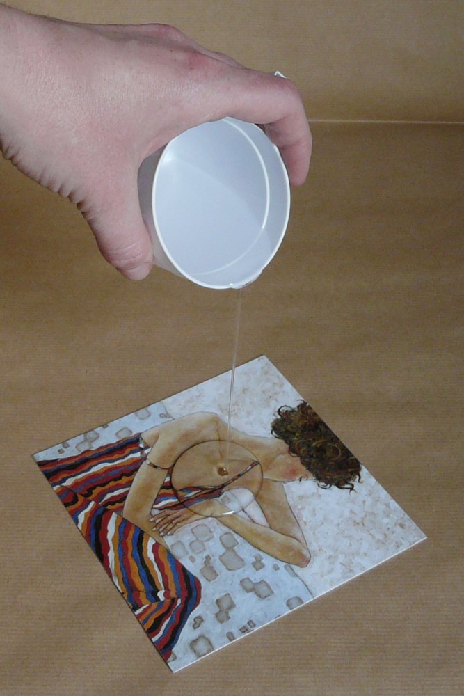I když je rozprostřena na velmi tenké tloušťce špachtlí nebo štětcem, pryskyřice se stává velmi lesklou.