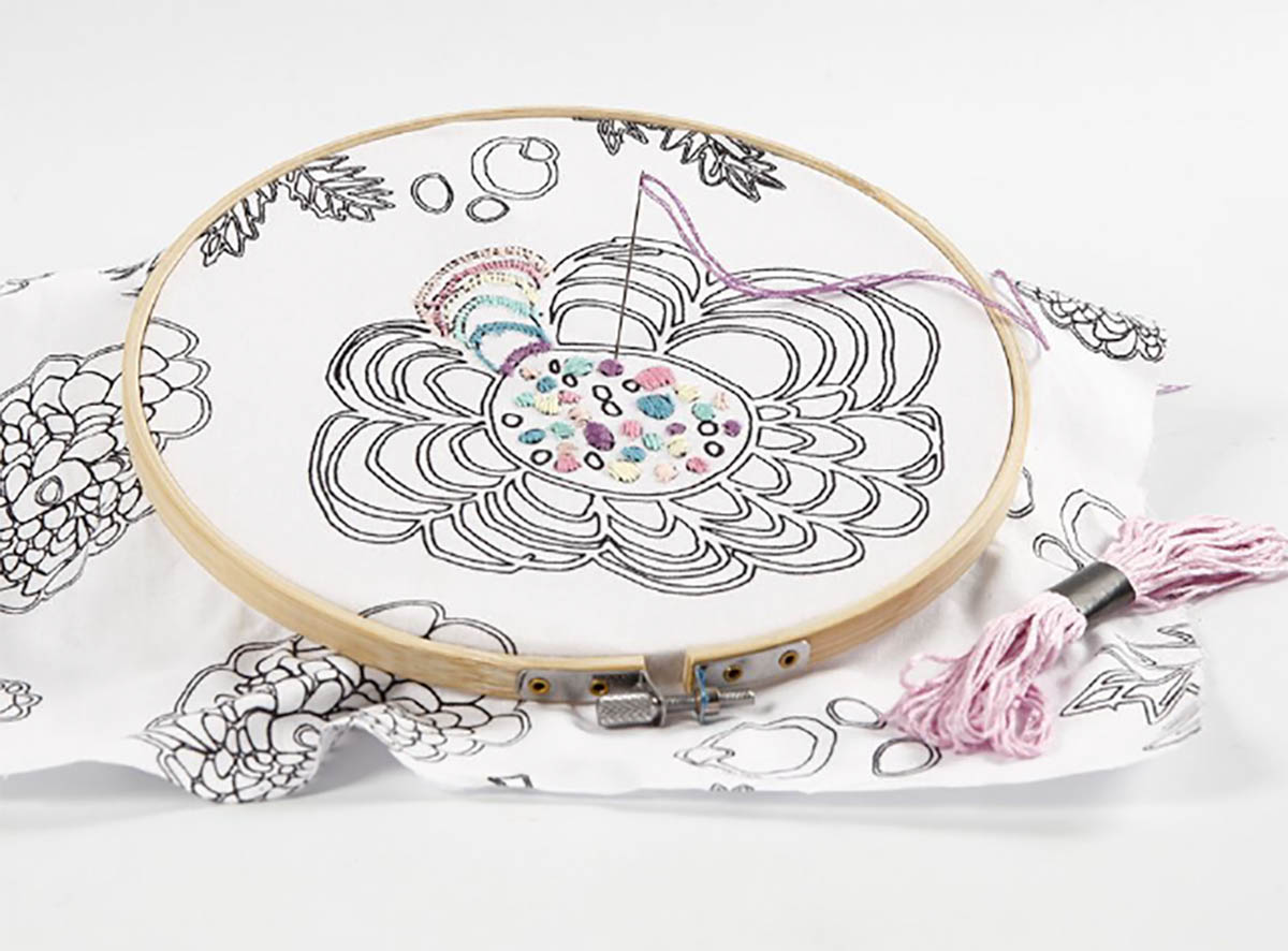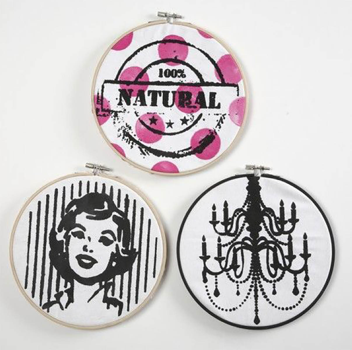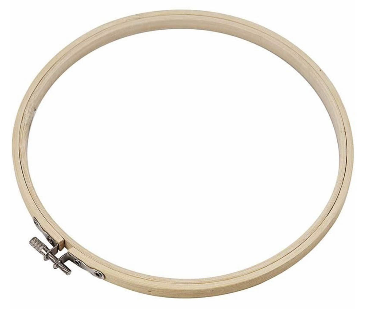 Kulatý dřevěný vyšívací rám s kovovou sponou. Může být použit jako nástroj pro roztažení a připevnění tkaniny, která má být vyšívána / malována,nebo jako rám pro zobrazení. Nástroj, slouží k udržení napnutí celého kusu látky při práci.