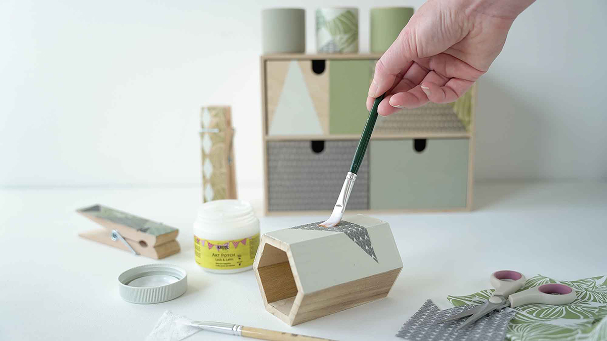 ART Potch ubrouskový systém nabízí vhodné lepidlo pro všechny druhy povrchů, například dřevo, terakotu, keramiku, kámen či kartón. Průhledné na vodní bázi.