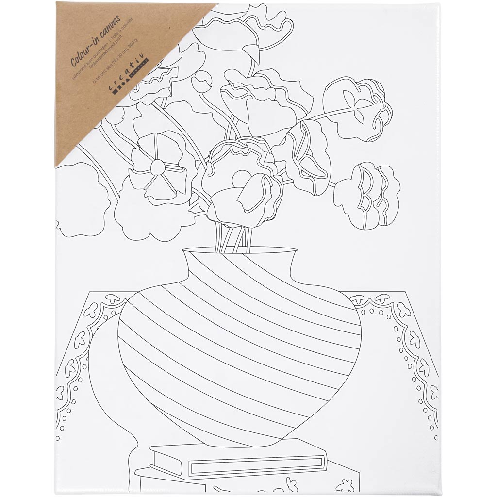Plátno není vhodné pro vodové barvy. Pokud uděláte chybičku, snadno ji opravíte černým fixem nebo akrylovým popisovačem s tenkou špičkou.