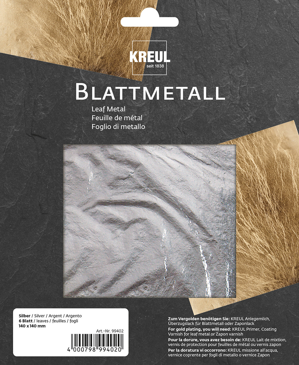 Stříbrný lesk je nenapodobitelně krásný a proměňuje předměty v nádherné unikáty. Se správnými základy a trochou šikovnosti lze tradiční zušlechťovací techniku z oblasti restaurování využít i pro kreativce. K tomuto účelu se na dekorativní předměty nanáší speciální lepidlo na metalické plátky KREUL a metalické plátky. Ty jsou k dispozici v barvách zlata, stříbra a mědi. Díky tomu je možné dosáhnout vysoce lesklých efektů na mnoha površích ze dřeva, skla, kartonu, porcelánu a mnoha dalších. Jednoduché doplňky, jako jsou rámy na obrazy, dřevěné díly nebo mísy, se tak promění v luxusně vypadající umělecké předměty.