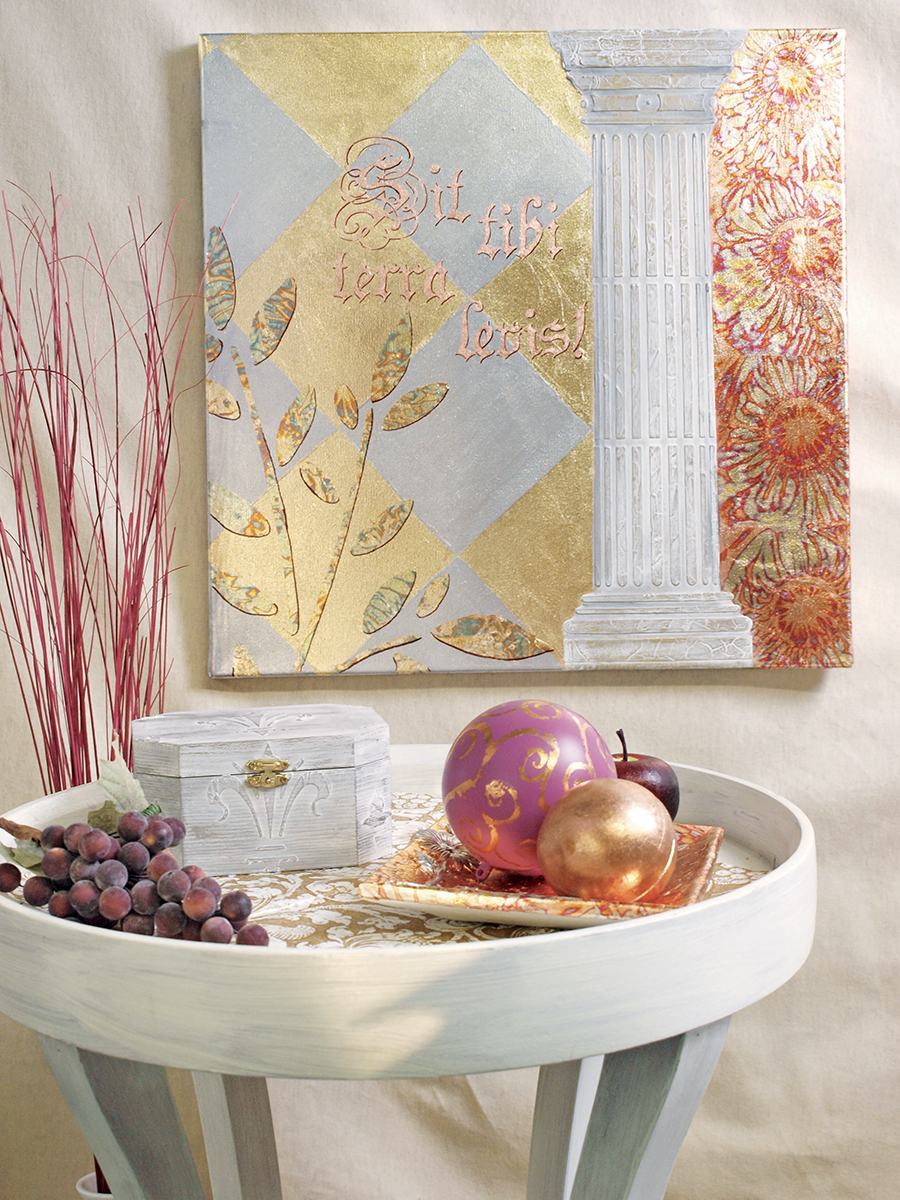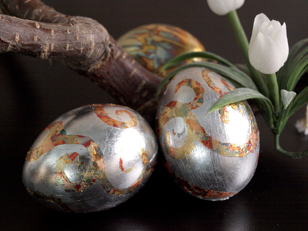 Zlatý lesk je nenapodobitelně krásný a proměňuje předměty v nádherné unikáty. Se správnými základy a trochou šikovnosti lze tradiční zušlechťovací techniku z oblasti restaurování využít i pro kreativce. K tomuto účelu se na dekorativní předměty nanáší speciální lepidlo na metalické plátky KREUL a metalické plátky. Ty jsou k dispozici v barvách zlata, stříbra a mědi. Díky tomu je možné dosáhnout vysoce lesklých efektů na mnoha površích ze dřeva, skla, kartonu, porcelánu a mnoha dalších. Jednoduché doplňky, jako jsou rámy na obrazy, dřevěné díly nebo mísy, se tak promění v luxusně vypadající umělecké předměty.