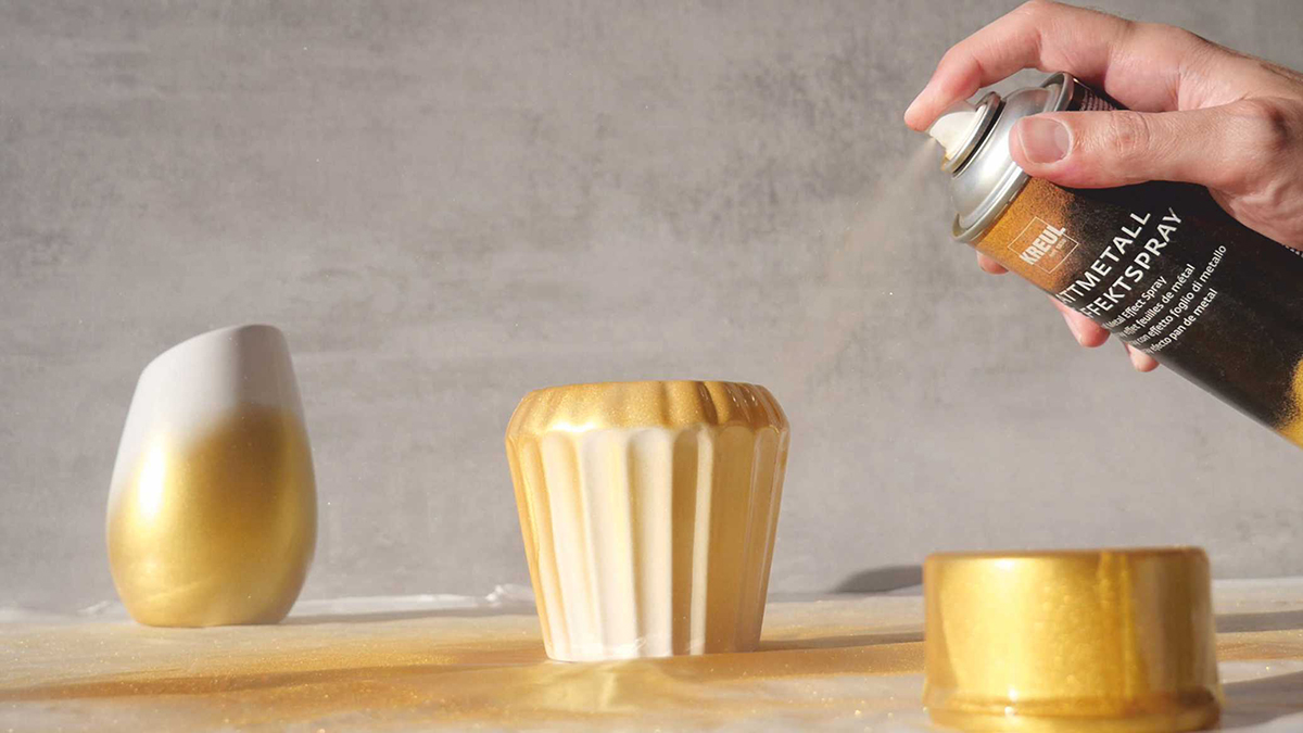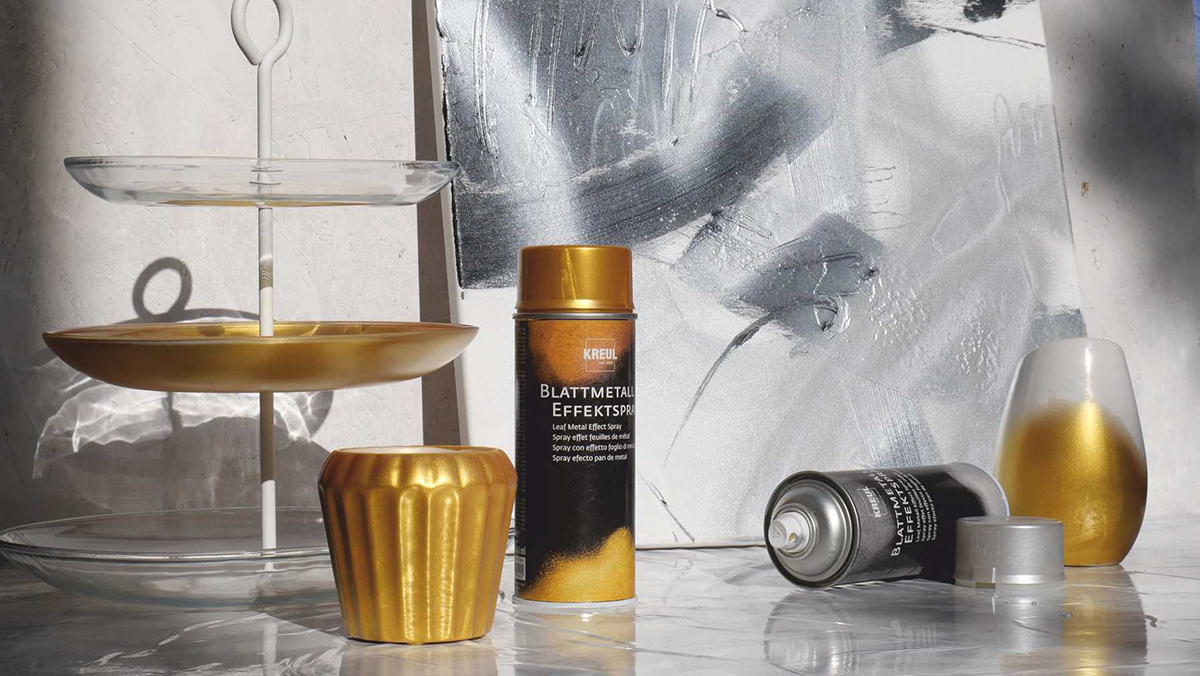 Jak docílit zlatého lesku snadno a rychle? Když se na povrch předmětu nanesou tenké částečky zlata, vytvoří se jedinečný lesk. Pokud nechcete tohoto metalického zlatého efektu dosáhnout nanesením plátkového zlata, zvolte KREUL metalický sprej. Nastříkáním několika tenkých vrstev získáte vzhled lístkového zlata. Zrcadla, rámy obrazů nebo jiné dekorativní prvky jsou v mžiku pozlacené a vytvářejí luxusní atmosféru bydlení. Sprej je vhodný pro oblíbené předměty v interiéru. Pozlacené dekorativní prvky ve venkovním prostředí by měly být dodatečně chráněny lakem KREUL Zapon. Restaurování ve zlatě je tak snadné!