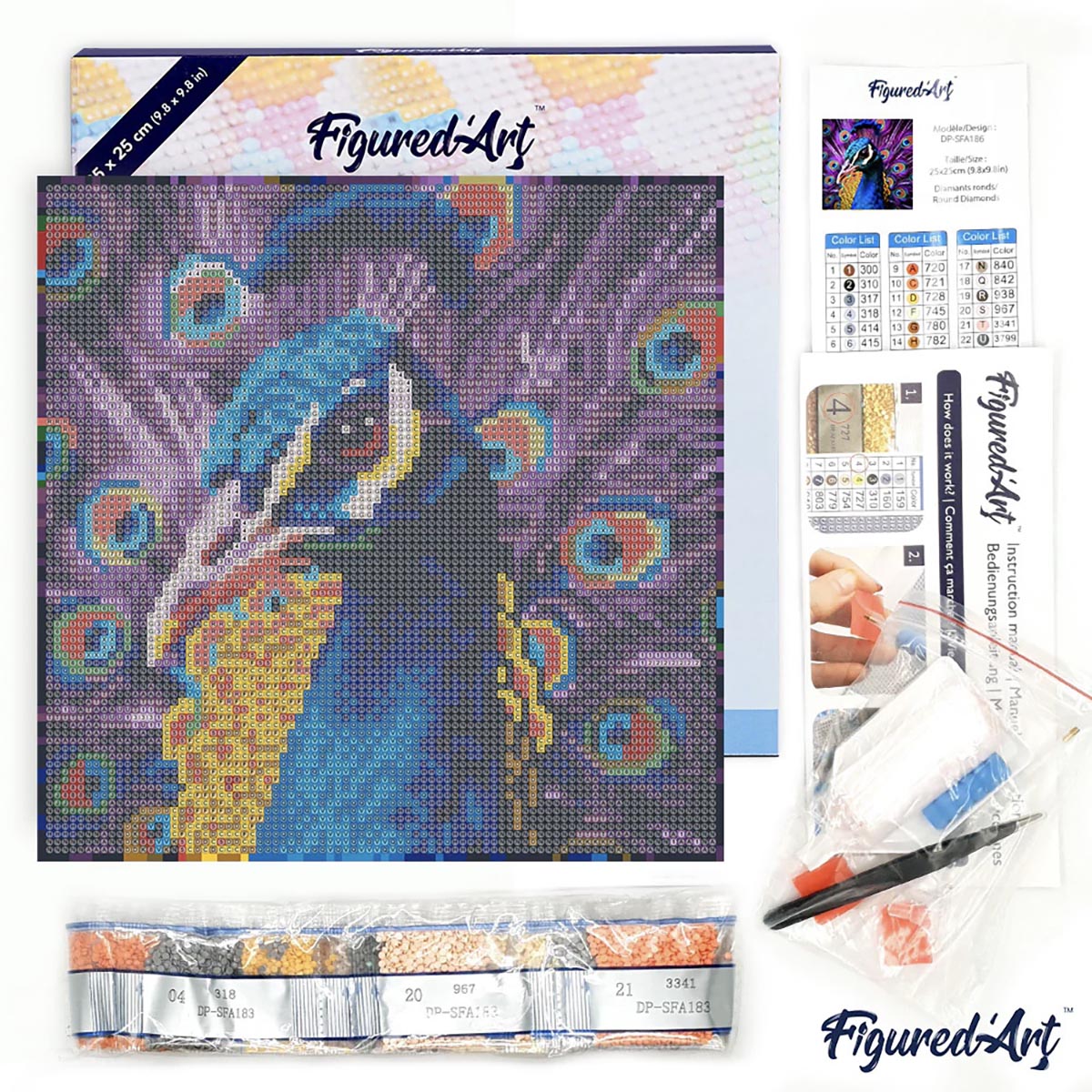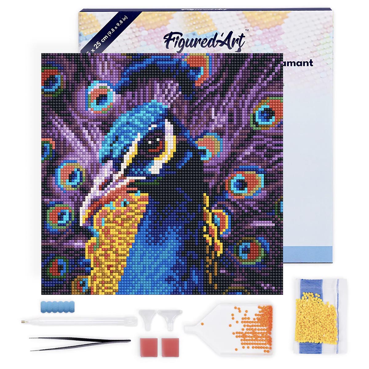 Mini diamantové malování - KRÁSNÝ PÁV bez rámu 25 x 25 cm |