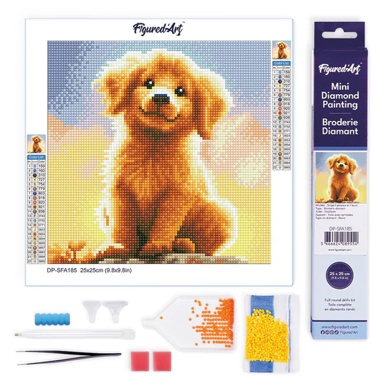 Mini diamantové malování - ŠŤĚŇÁTKO ZLATÝ RETRÍVR bez rámu 25 x 25 cm |