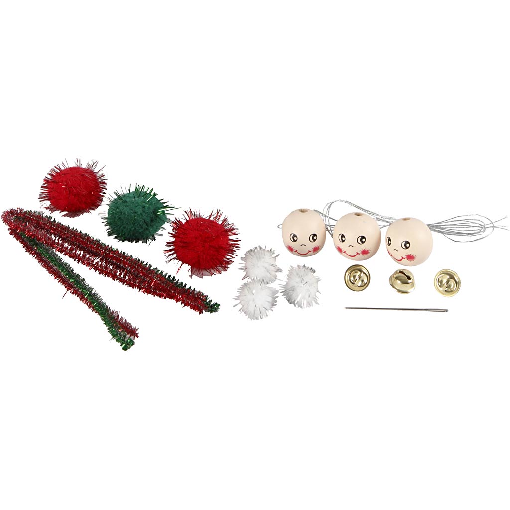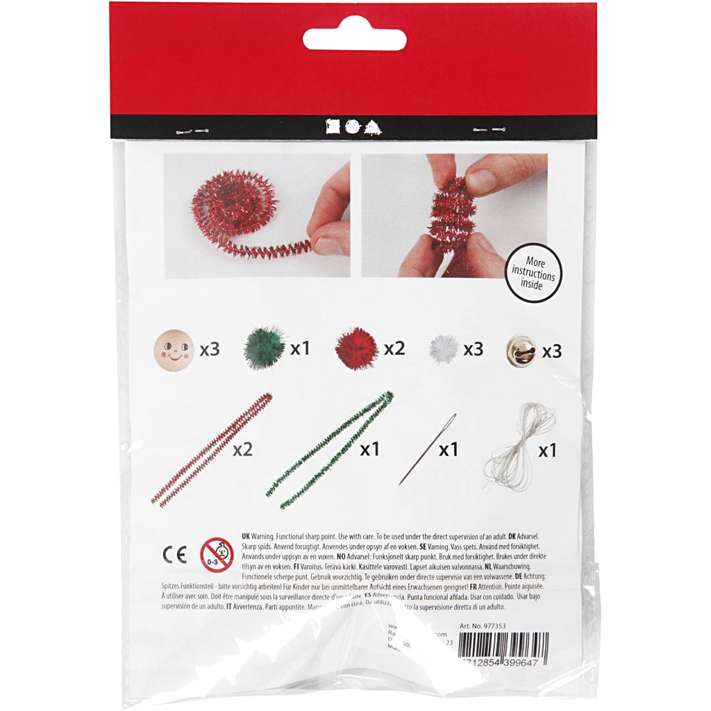 Sada obsahuje: kovové žinylky, kovové bambulky, hlavičky, zvonečky, jehlu a provázek na zavěšení.