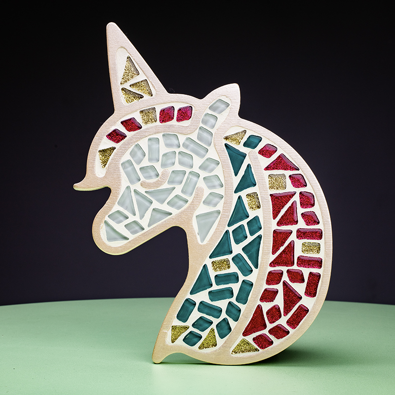 Každý si může vytvořit vlastní mozaiku! Mozaikové dílky jsou vyrobeny z recyklovaného skla a podstavce jsou z dřevěných desek MDF. Všechny materiály jsou příjemné na dotek, uživatelsky přívětivé a práce s nimi je bezpečná.