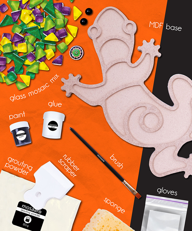 Každý si může vytvořit vlastní mozaiku! Mozaikové dílky jsou vyrobeny z recyklovaného skla a podstavce jsou z dřevěných desek MDF. Všechny materiály jsou příjemné na dotek, uživatelsky přívětivé a práce s nimi je bezpečná.