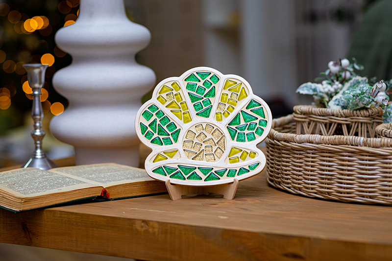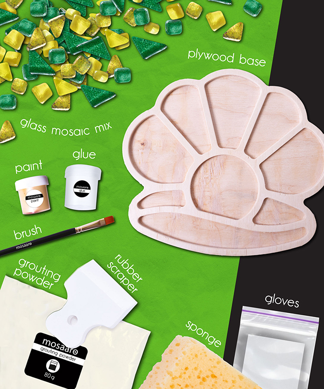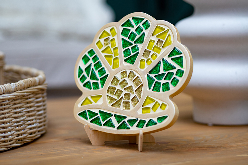 Každý si může vytvořit vlastní mozaiku! Mozaikové dílky jsou vyrobeny z recyklovaného skla a podstavce jsou z dřevěných desek MDF. Všechny materiály jsou příjemné na dotek, uživatelsky přívětivé a práce s nimi je bezpečná.