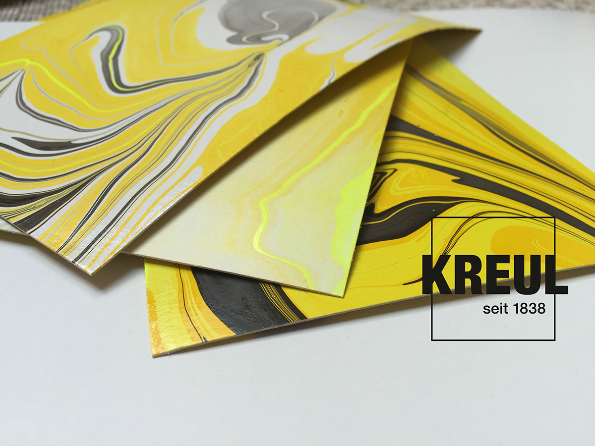 Setkali jste se už někdy s mramorováním? Tato technika je velice jednoduchá a tak můžete lehce tvořit i s vašimi dětmi. S mramorovacími barvami Kreul vytvoříte krásné dekorace, ať už mramorovaná velikonoční vajíčka, vánoční ozdoby, svíčky nebo cokoliv dalšího, co vás napadne. Mramorovat tak můžete např. pohlednice, porcelánové hrnečky, keramiku, skleněné dekorace či výrobky ze dřeva. Zkrátka, kdykoliv potřebujete vytvořit neobvyklý a neopakovatelný vzor, mramorování nabízí netušené možnosti.