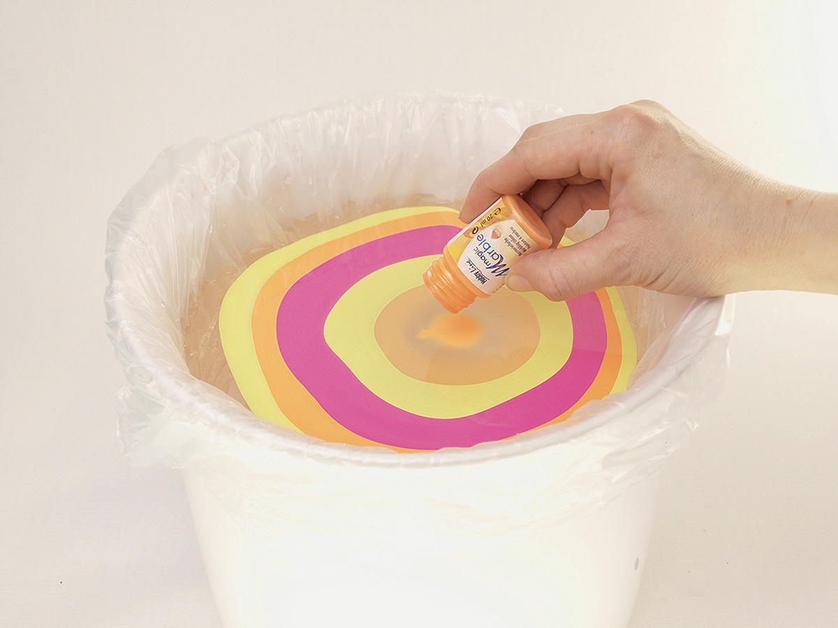 • pro jednobarevné mramorování použijeme kombinaci bezbarvé barvy a žádané barvy