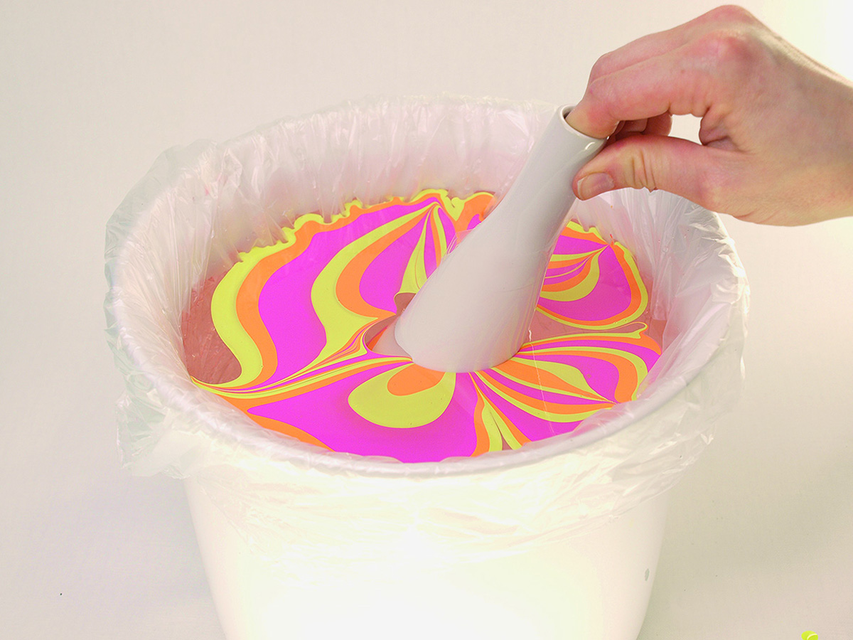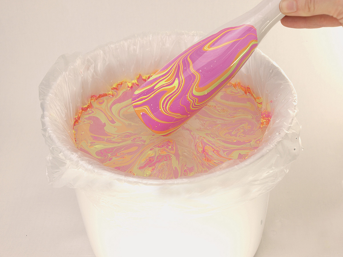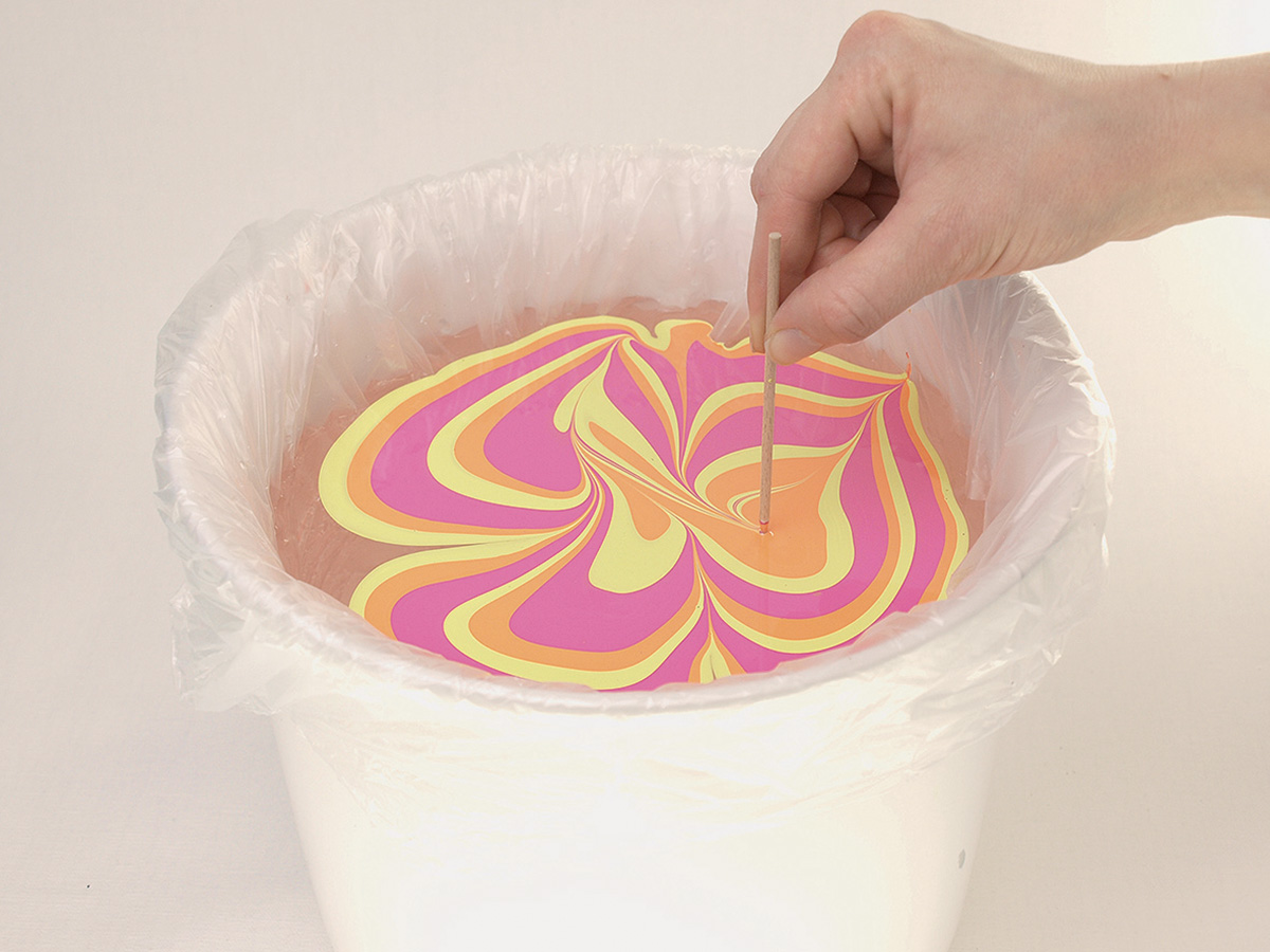 • při mramorování postupujte rychleji, aby se zabránilo vzniku barevného filmu