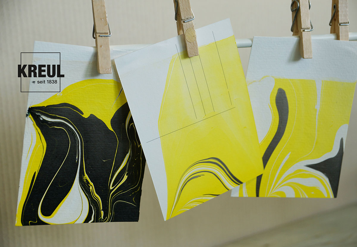 • při mramorování postupujte rychleji, aby se zabránilo vzniku barevného filmu