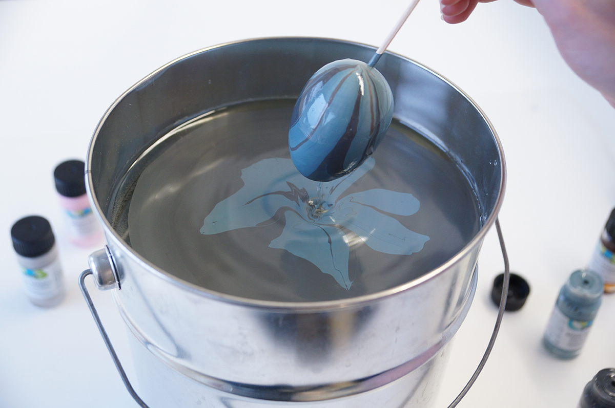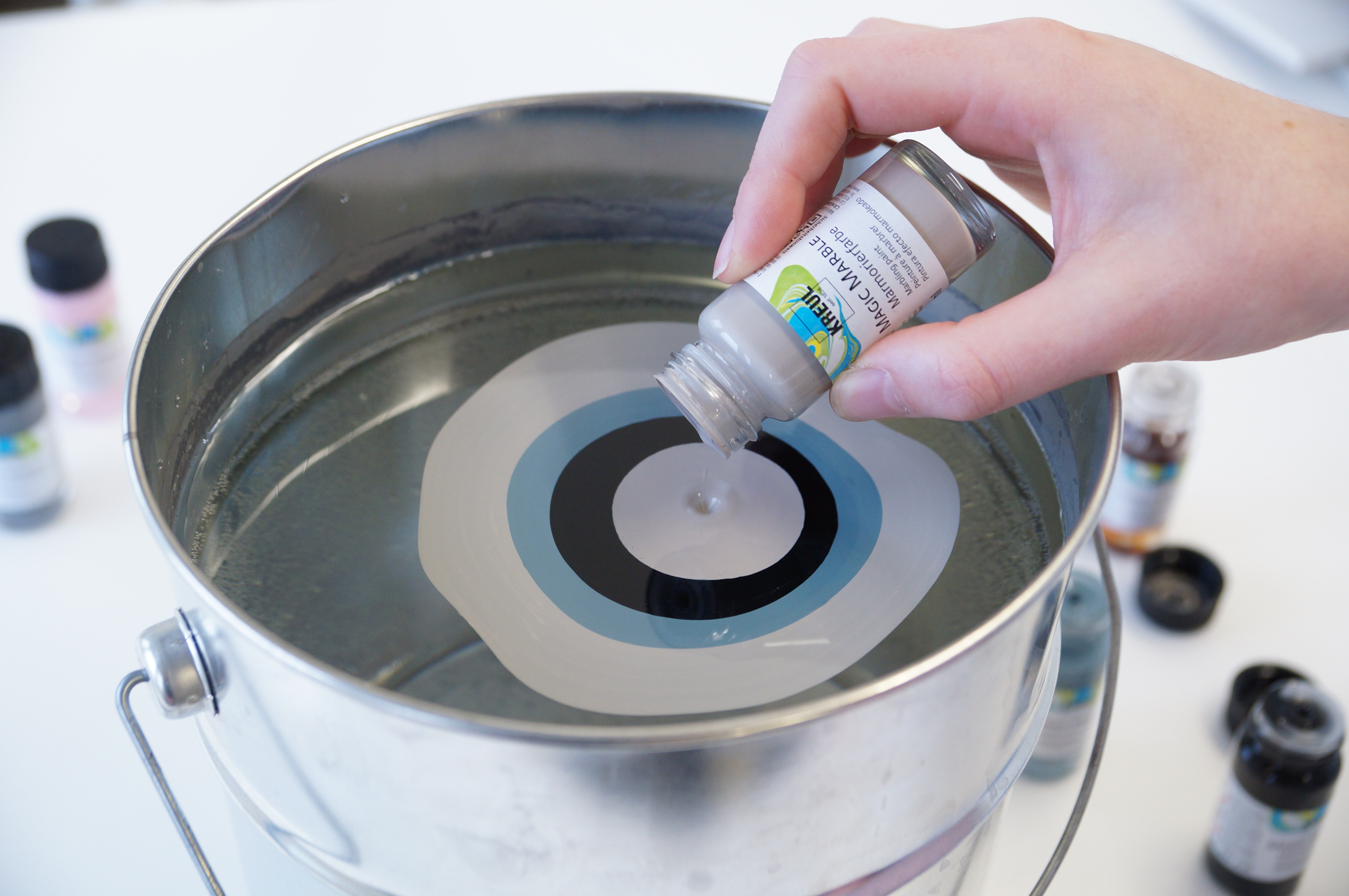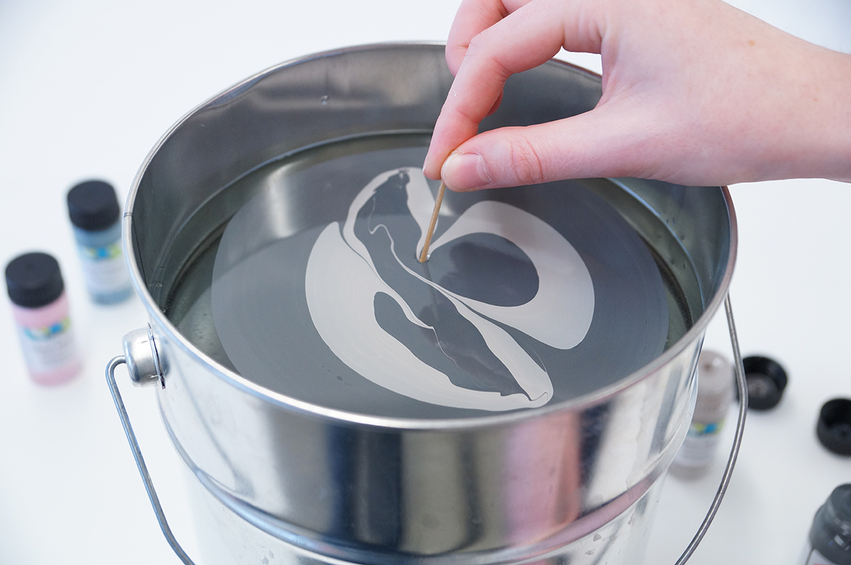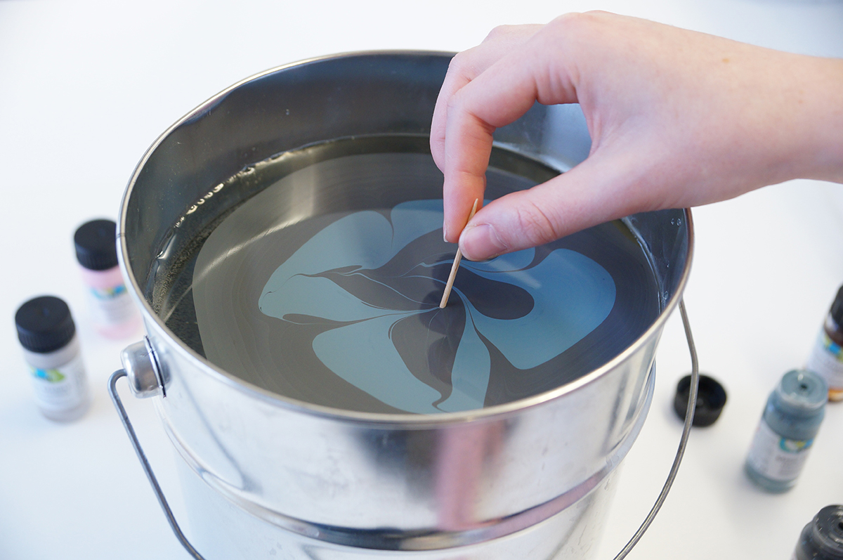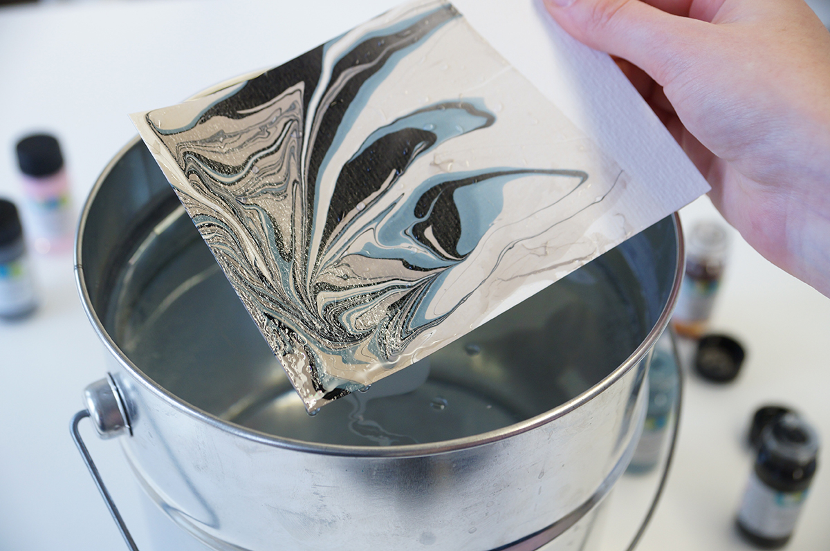 • při mramorování postupujte rychleji, aby se zabránilo vzniku barevného filmu